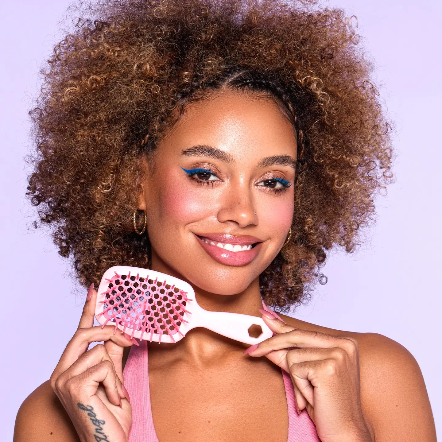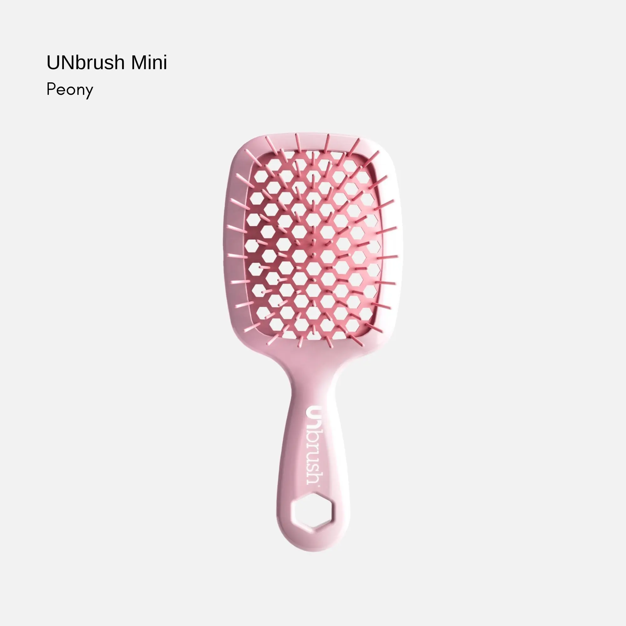 - UNbrush Mini Detangling Hair Brush (Peony): DuoFlex anti-static bristles reduce breakage and tame frizz.