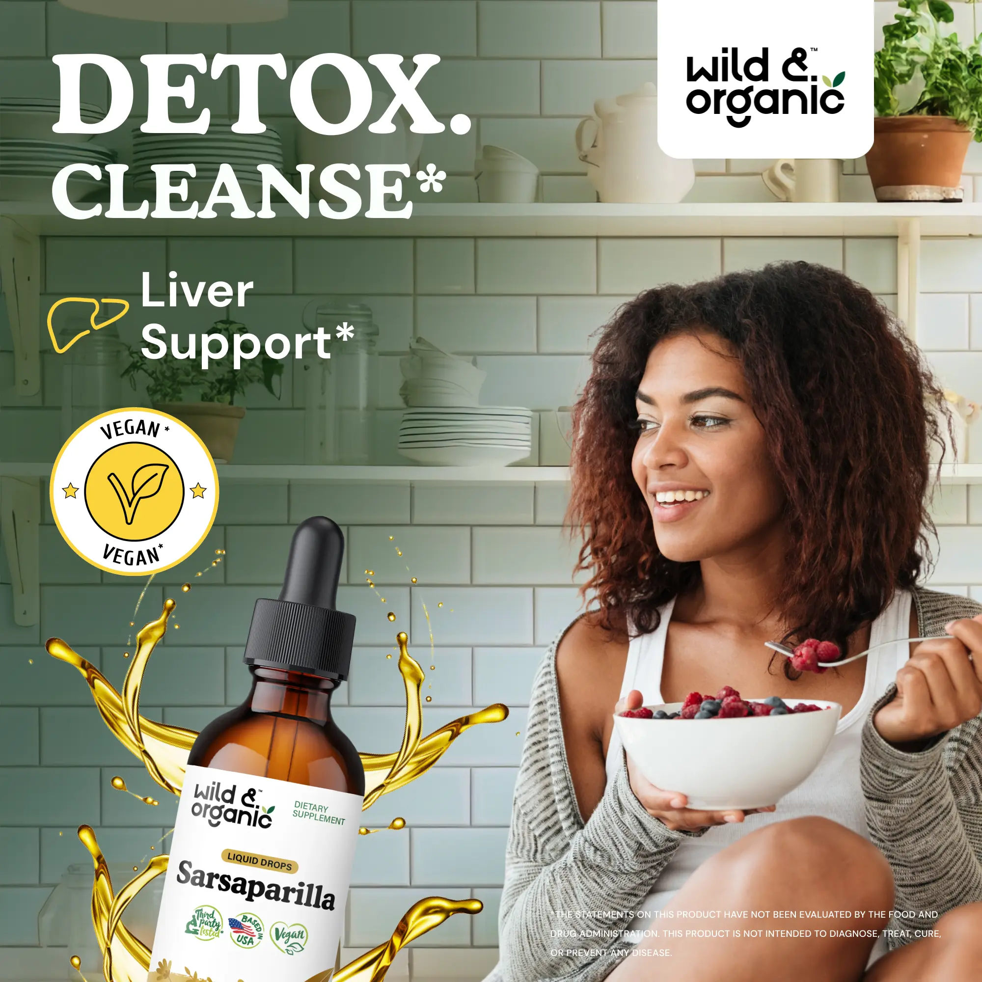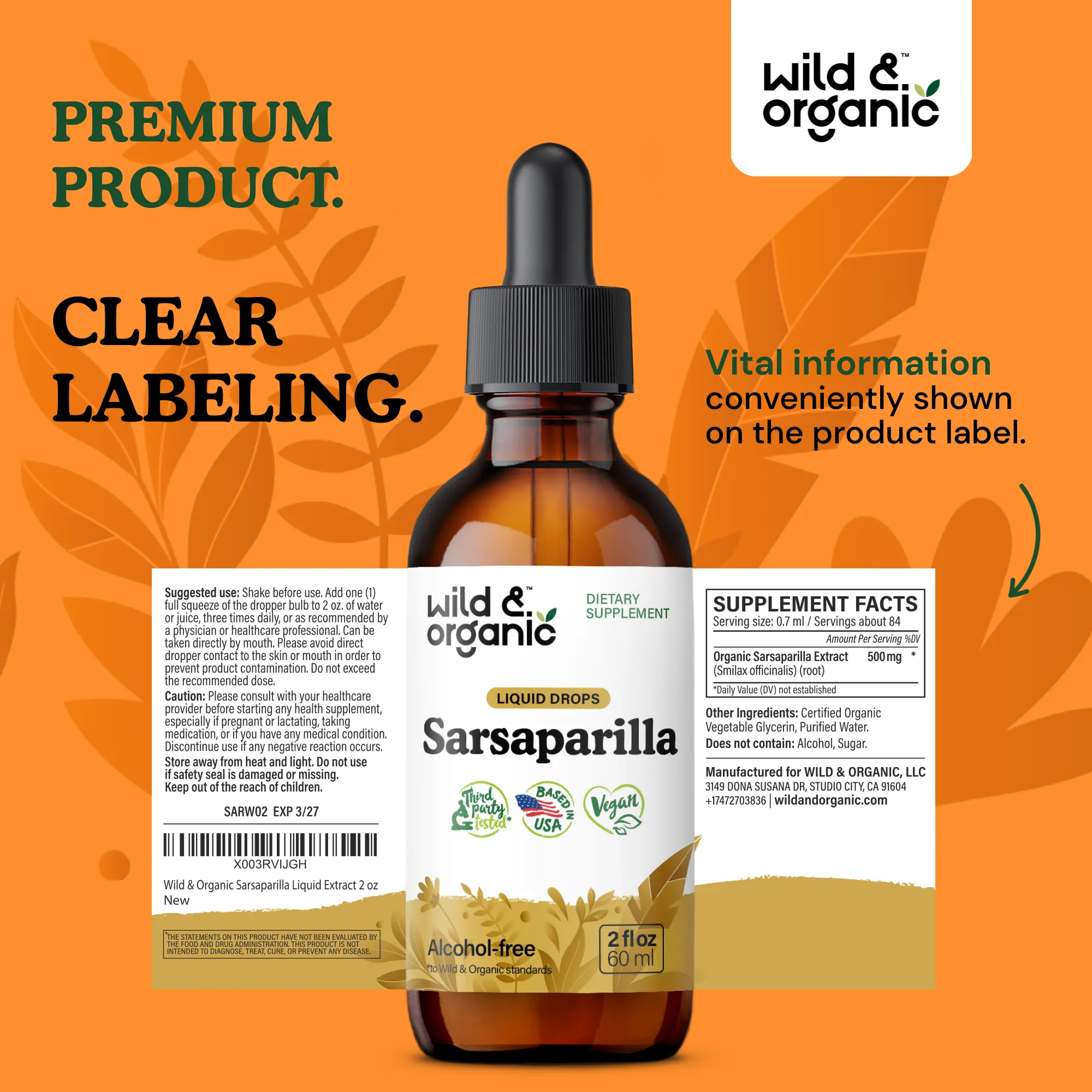 Detox Support: Each serving of Wild & Organic's sarsaparilla tincture contains 500 mg of sarsaparilla extract. It supports an overall cleanse and detox.
