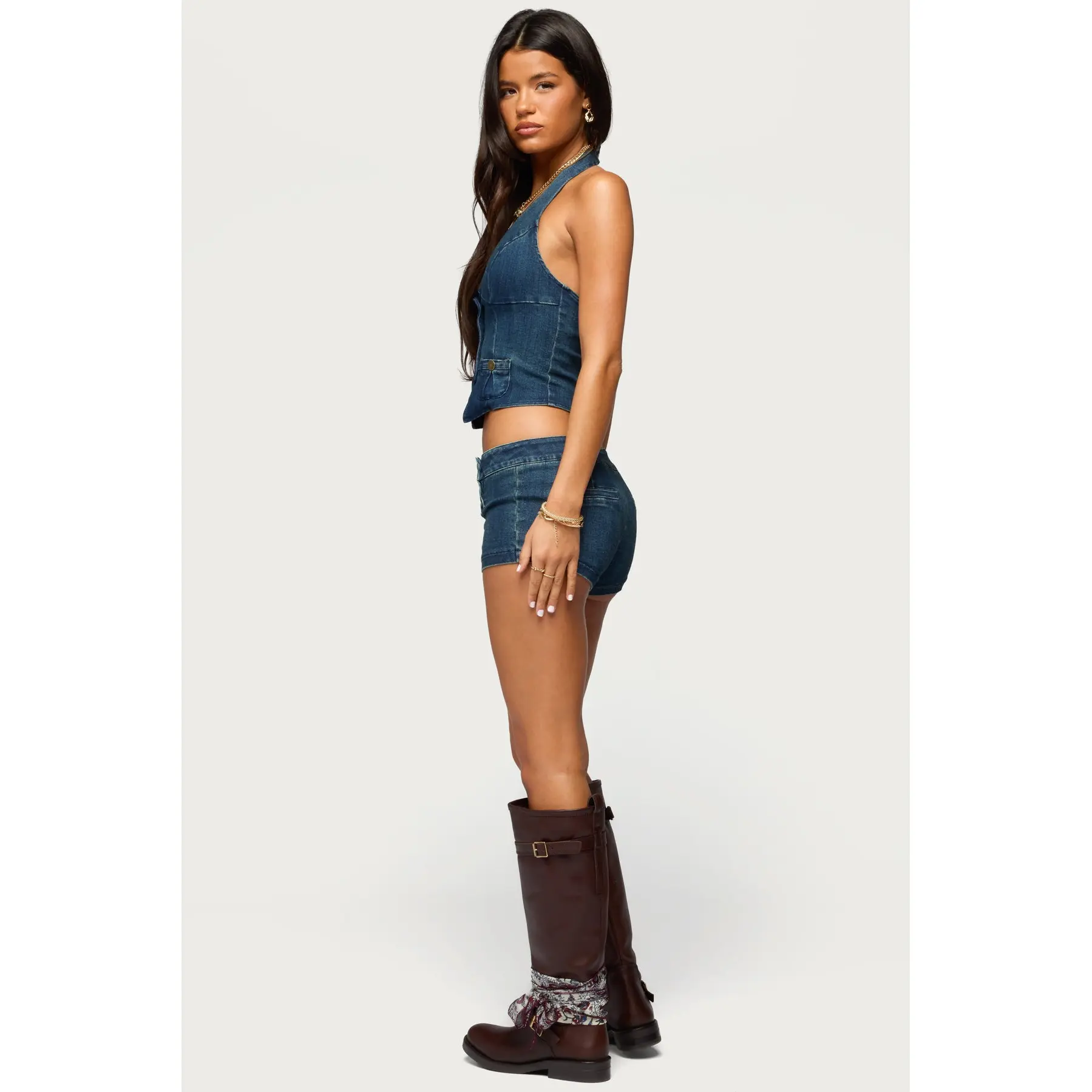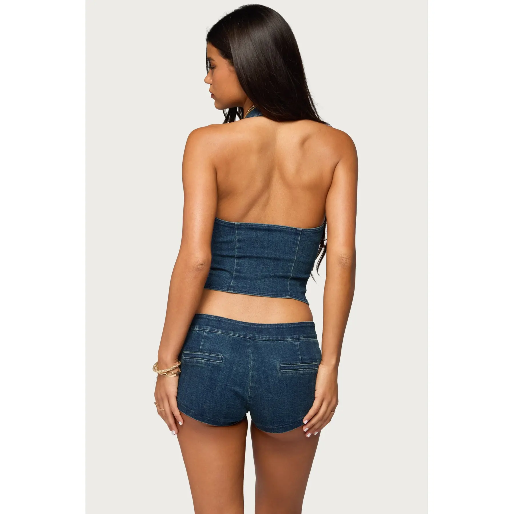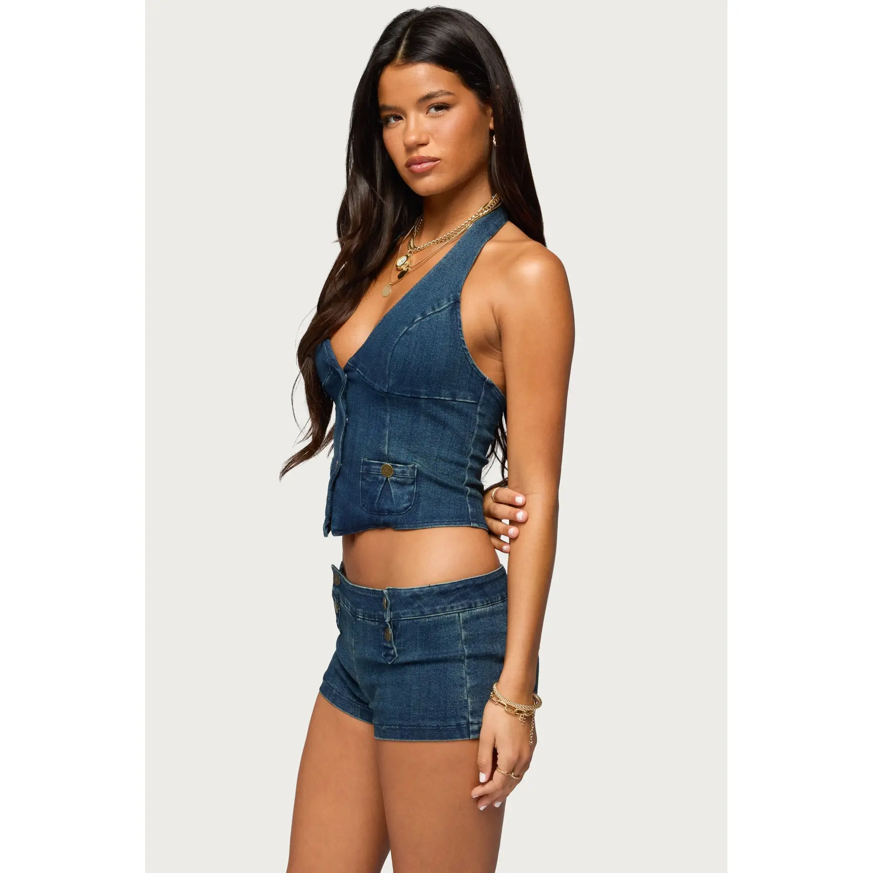 Sashe Button Up Denim Halter Top