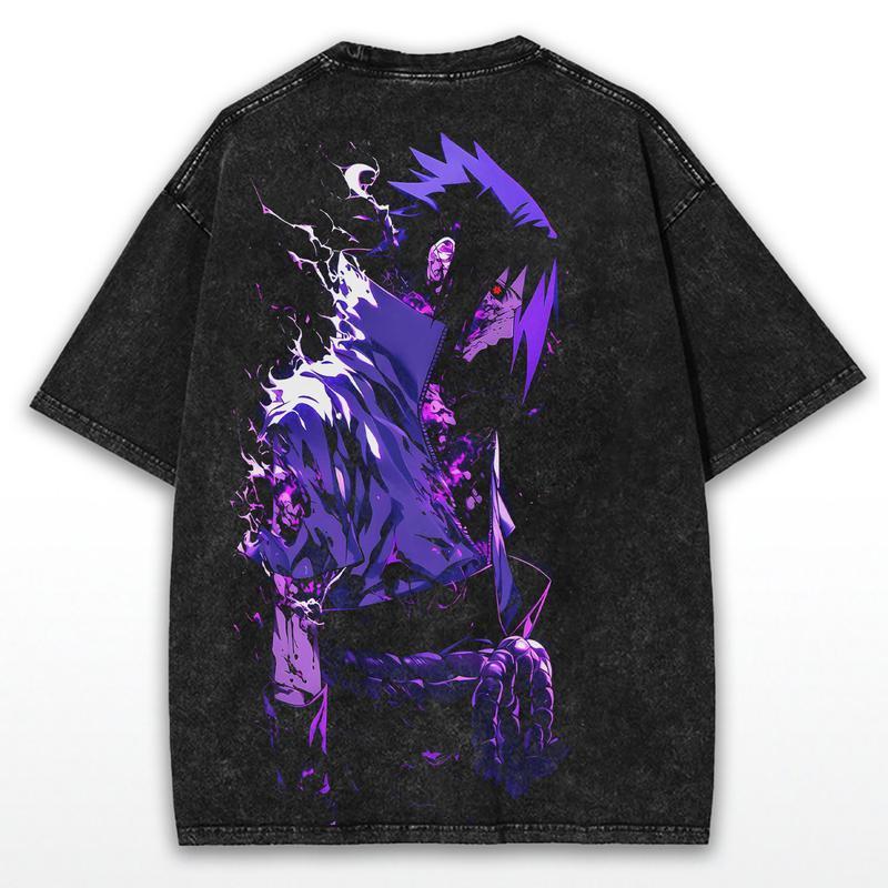Sasuke Anime Graphic Tee - Stylish Unisex Washed Shirt for True Naruto Fans, Comfortable Cotton Fit with Bold Anime Print Design, Perfect for Streetwear Vibes