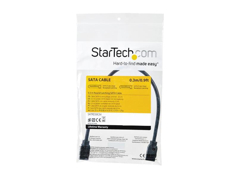 StarTech.com SATRD30CM 12 Inch (30cm) Round SATA Cable - Latching Connectors - 6Gbs SATA Data Cord - SATA Hard Drive Power Cable - Black (SATRD30CM)