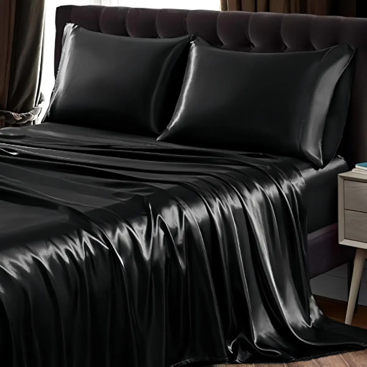 satin bed sheets set