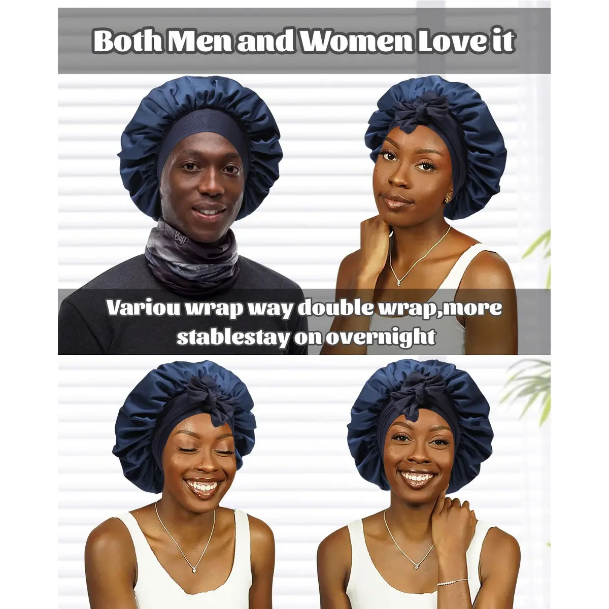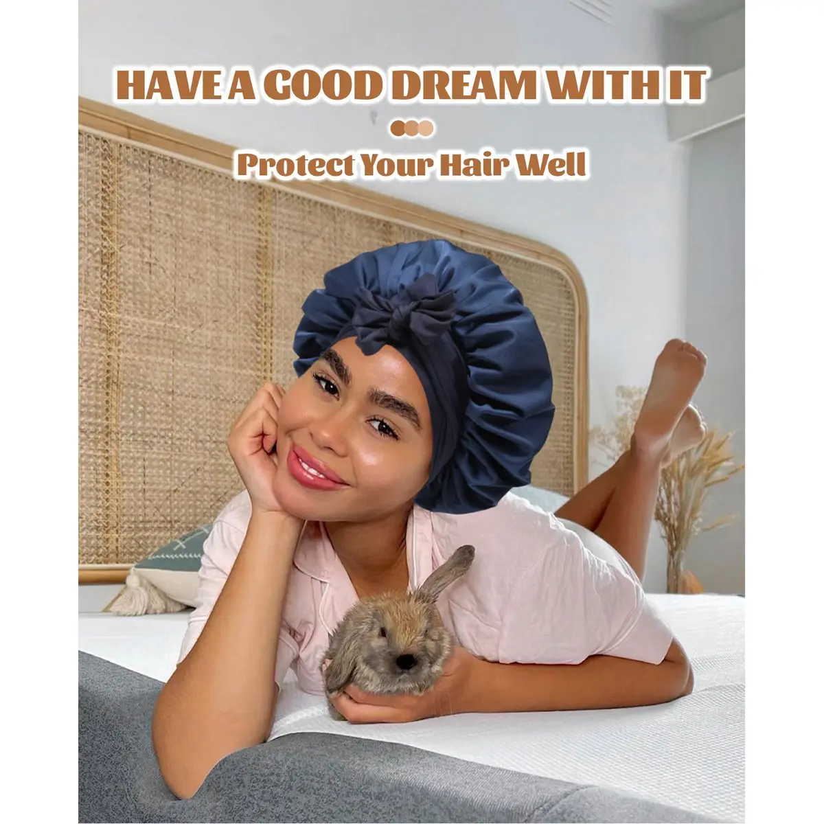 【Stay On Head All Night To Protect Your Hair】:Satin night cap can effectively protect hair to the maximum extent, help lock hair moisture, prevent dryness, frizz, split ends. Stays put all night long, and leaves hair softer, smoother, shinier