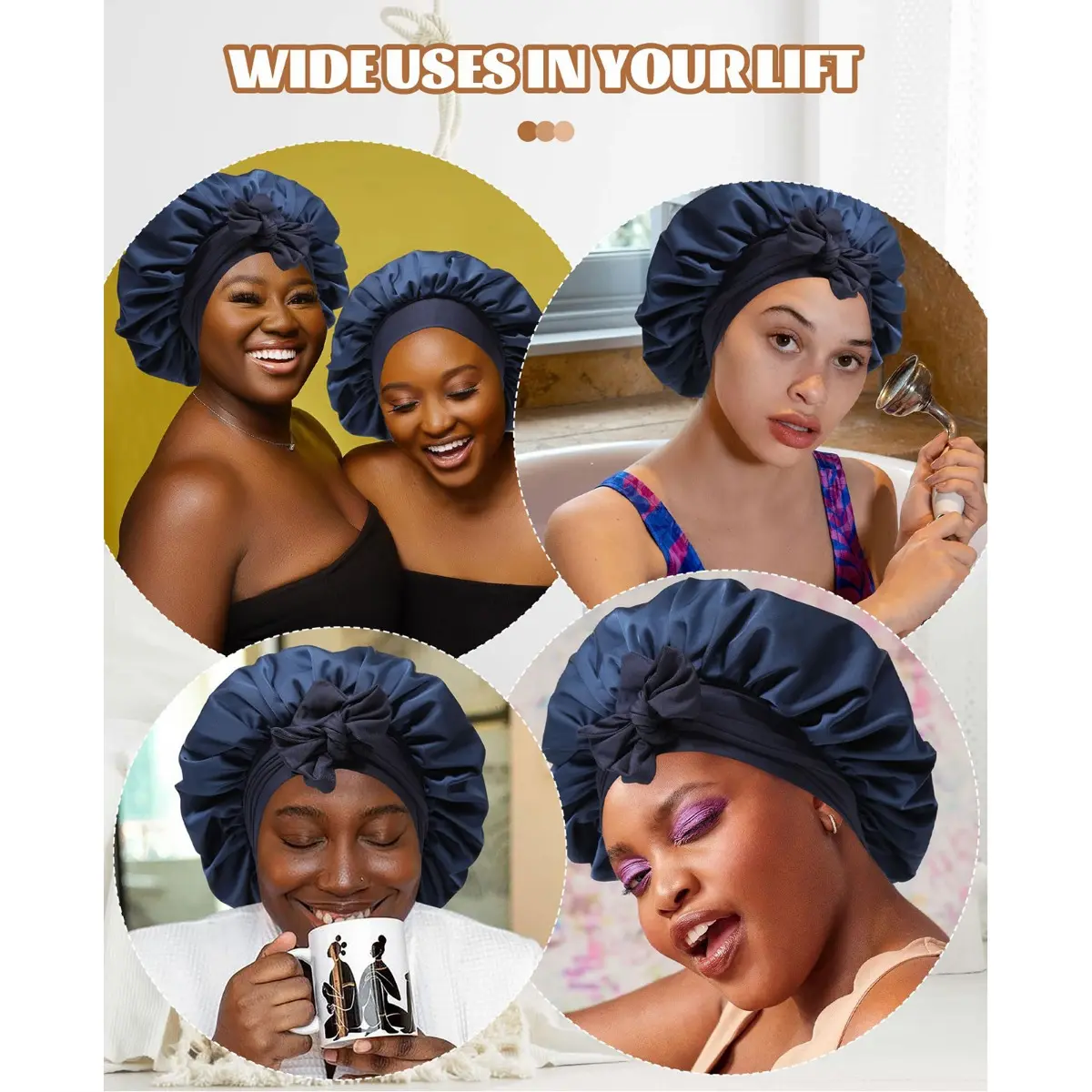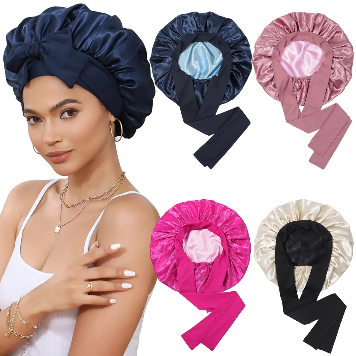 【Satin Bonnet for Sleeping Versatile】:Satin hair bonnet is not only suitable for sleeping, you can also use it to wash your face, bathe, cook, do SPA, tie your hair or clean your face while doing makeup, even do housework, do yoga and so on