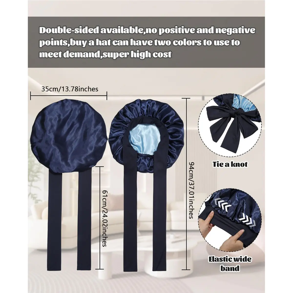 【Premium Satin Reusable Double-Layer Sleep Cap】:Satin cap is made of high-quality, lightweight 100% polyester fabric, soft and breathable. Double-layer nightcap, can be worn on both sides, double-layer hair protection