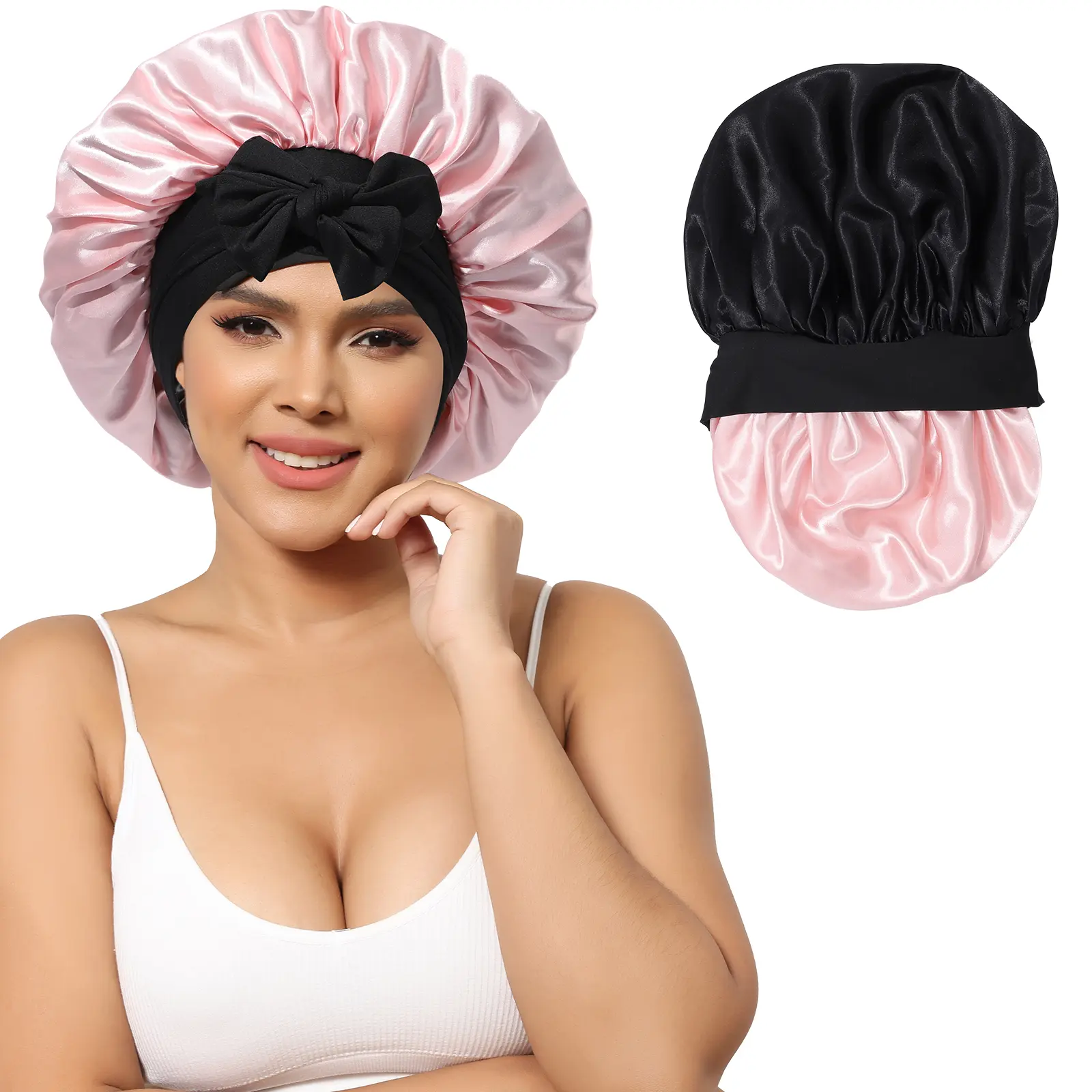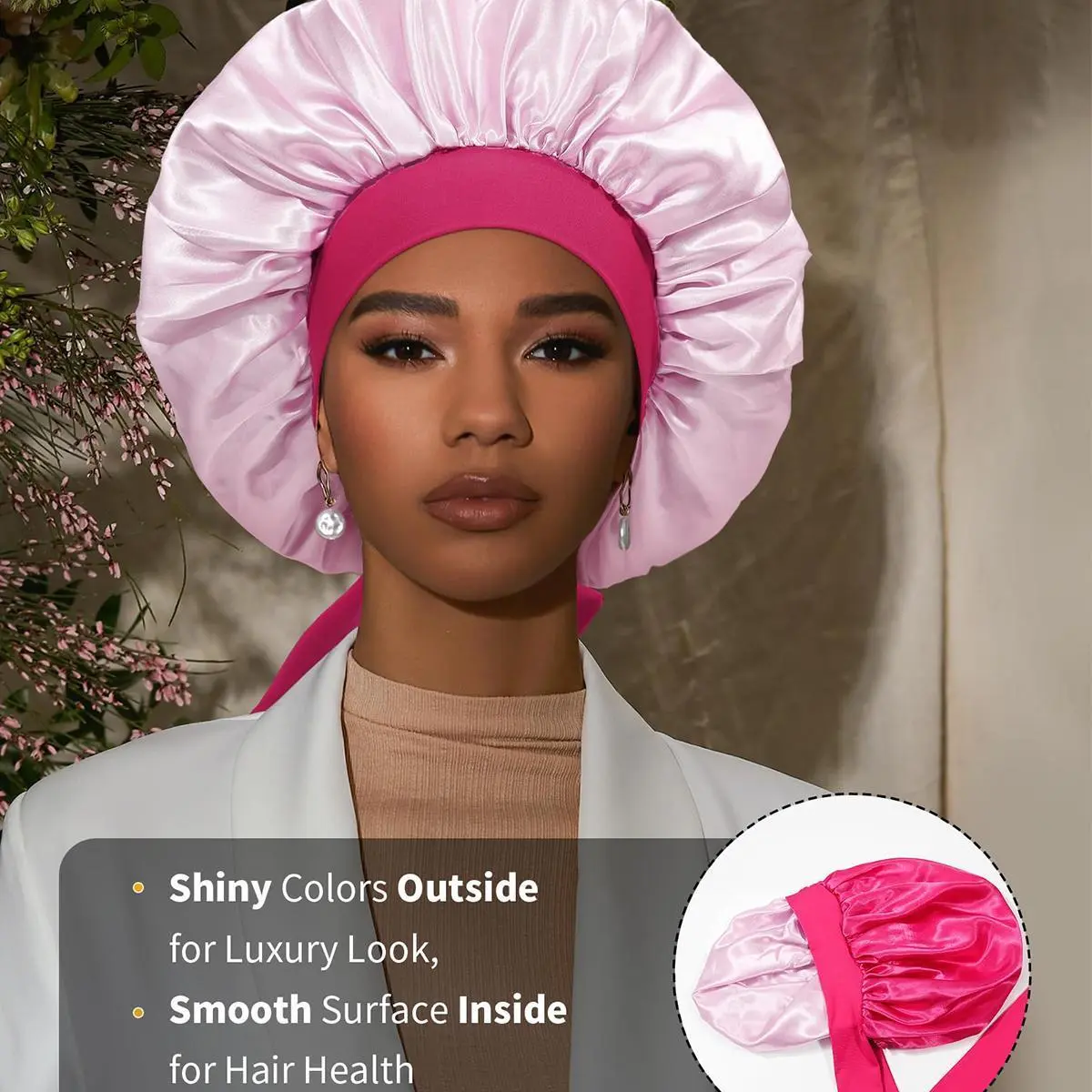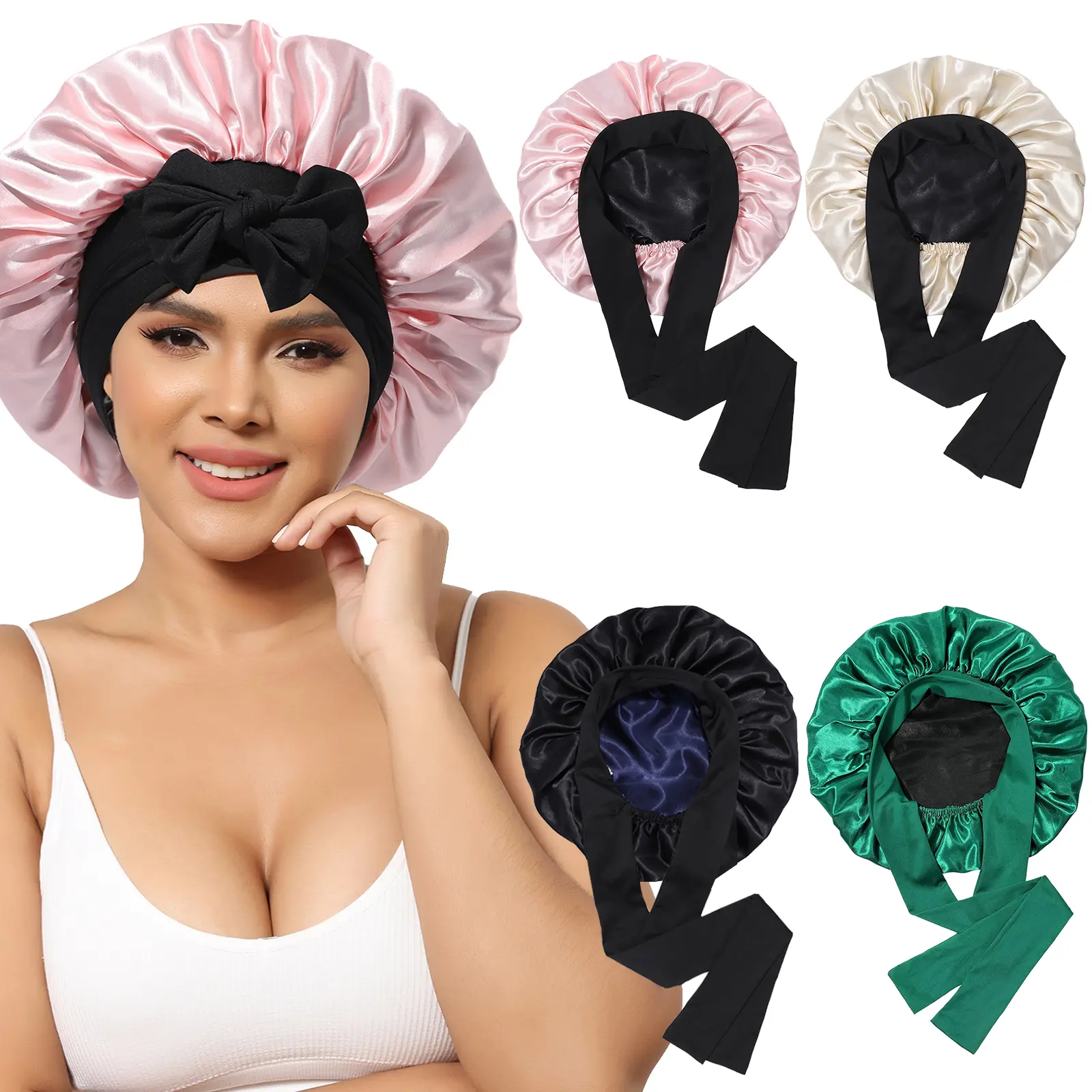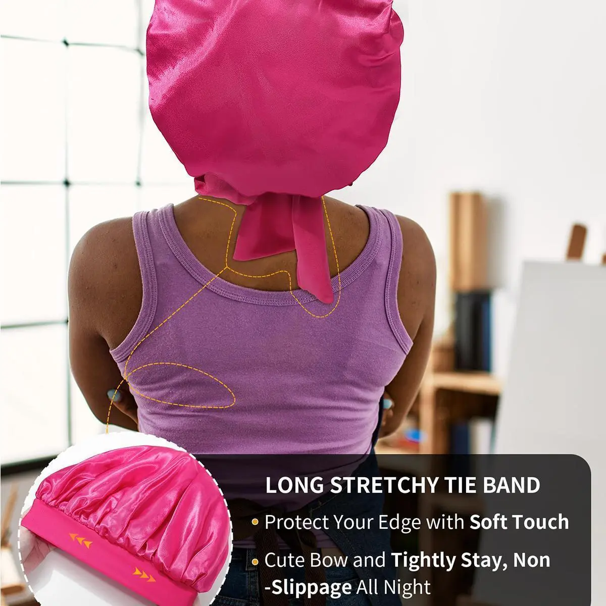ăSatin Bonnet For Sleeping VersatileăSatin hair bonnet is not only suitable for sleeping, you can also use it to wash your face, bathe, cook, do SPA, tie your hair or clean your face while doing makeup, even do housework, do yoga, silk nightcap Can be used in many occasions.