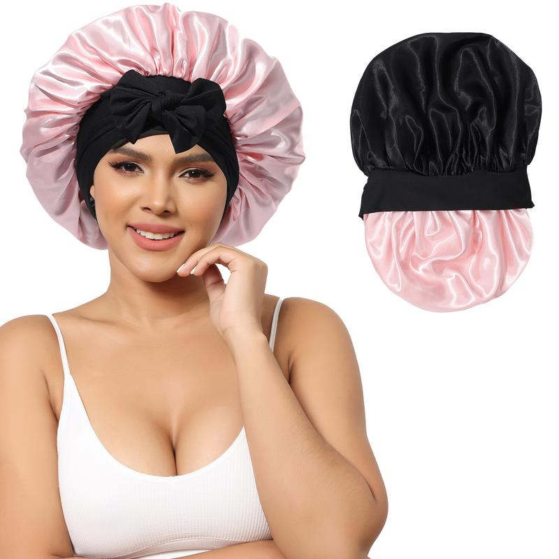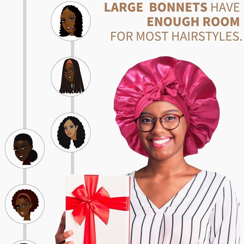 ăSleep Bonnet for All HairstylesăSilk nightcap is very comfortable to wear and can maintain the integrity of the hair. The satin nightcap can perfectly cover all kinds of hair: long hair, curly hair, straight hair, ponytail, crochet hair, braids, wigs and more.