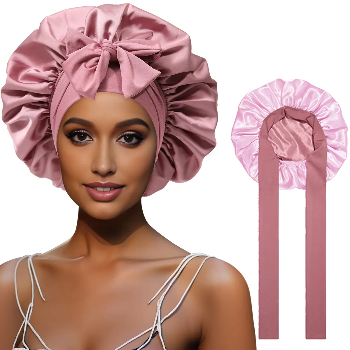 【REVERSIBLE SATIN BONNET FOR SLEEPING CURLY 】HAIR - The reversible bonnet for sleeping women can be worn in both positive and negative colors, which is both practical and beautiful, suitable for women and men of most ages.