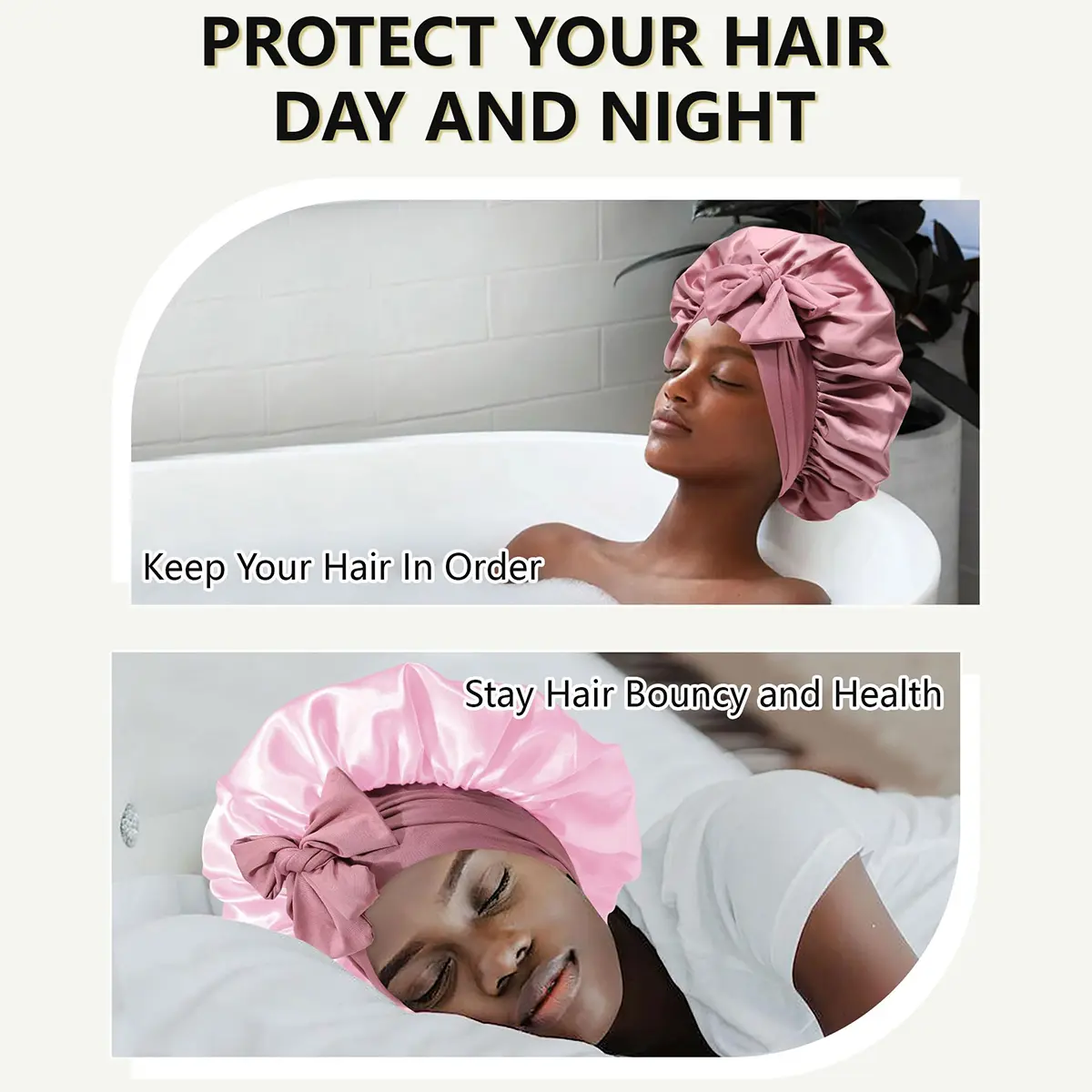 【DOUBLE LAYER SATIN SLEEP BONNET TO BETTER PROTECT HAIR】 - The double-layer satin sleeping bonnets for women curly hair are smooth and shiny, soft, skin-friendly, and breathable, which protect hair, prevent frizz and tangles, reduce breakage and shedding, balances oily roots and dry ends, and keeps hair moisturized and shiny.