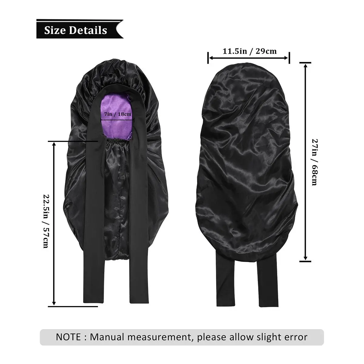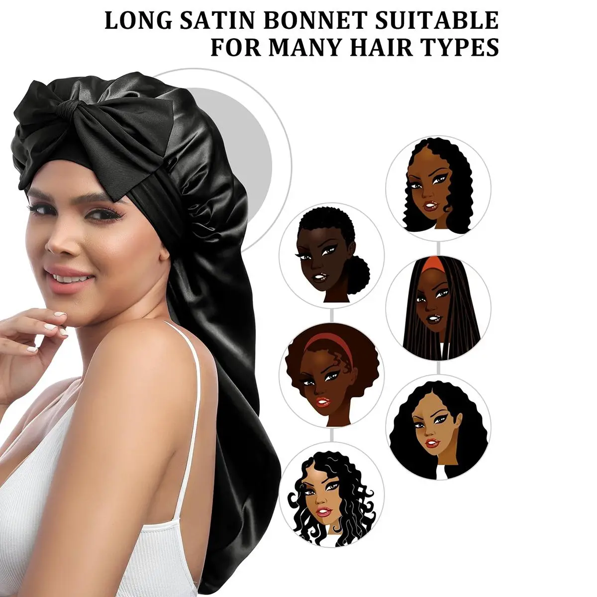 【Satin Bonnet for Long Hair】 - The long bonnet for women has 2 long elastic bands to fix the satin bonnet and fit the head better; the nightcap is long enough and has enough space to accommodate longer hair, which is very suitable for people with long hair