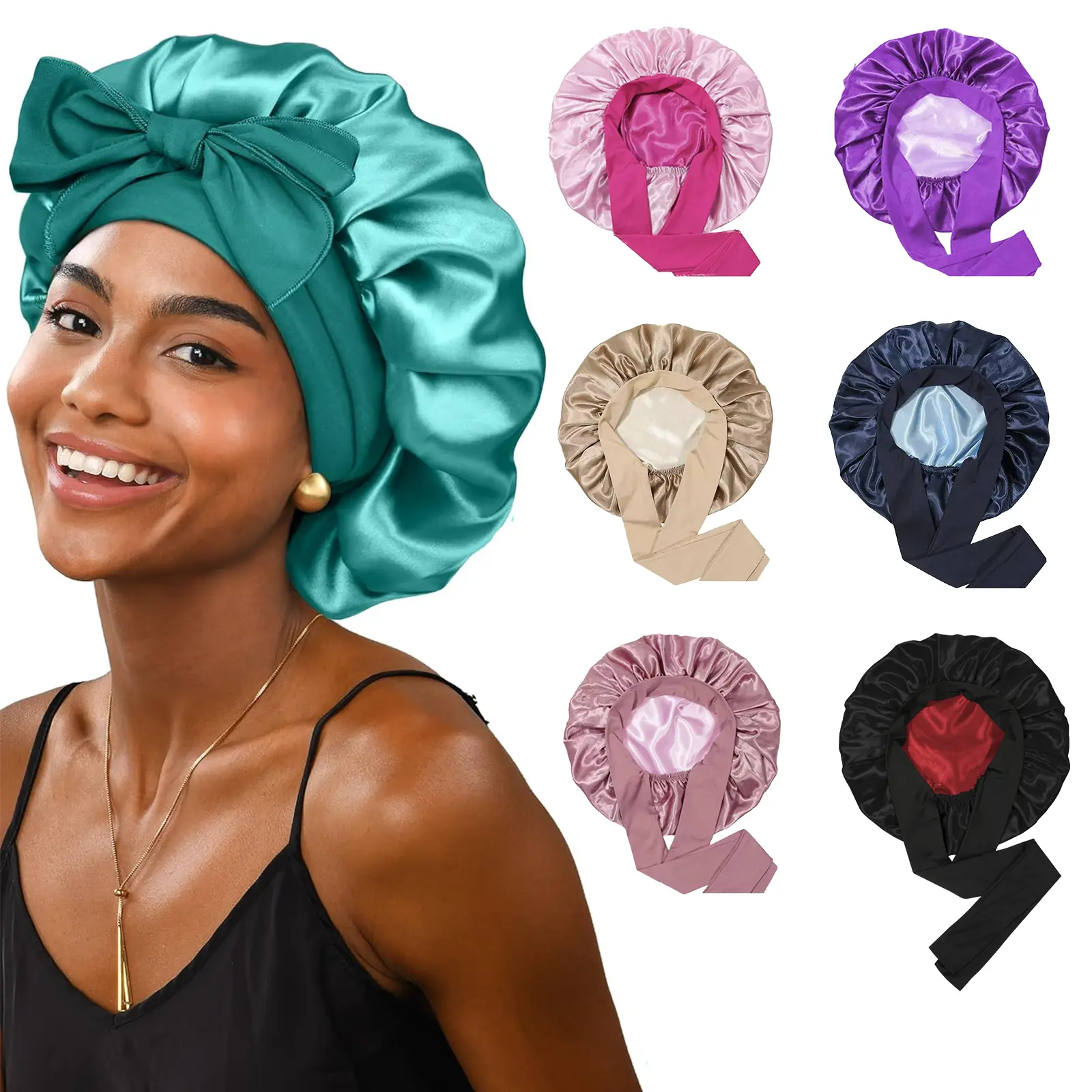 ·Silk Bonnet with Tie Band: The hair bonnet have a wide stretchy soft band, you can adjust and tie the band by yourself, that can be stretched to fit different head sizes, perfectly solve the problem of bonnet off your head while sleeping. You can also make a nice bow on the forehead or side using the soft wide band to make you unique and beautiful.