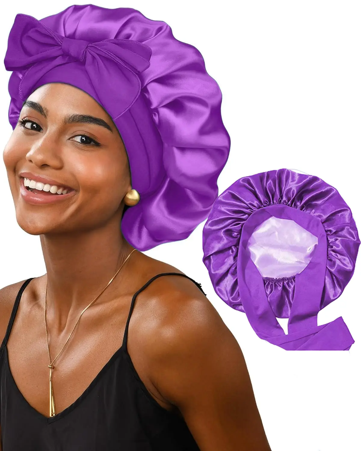 ·Two-Color Reversible Sleep Bonnet: This satin bonnet is 2-color reversible design, both side smooth silkly, two different colors to choose, you can wear either side to match your pajamas.