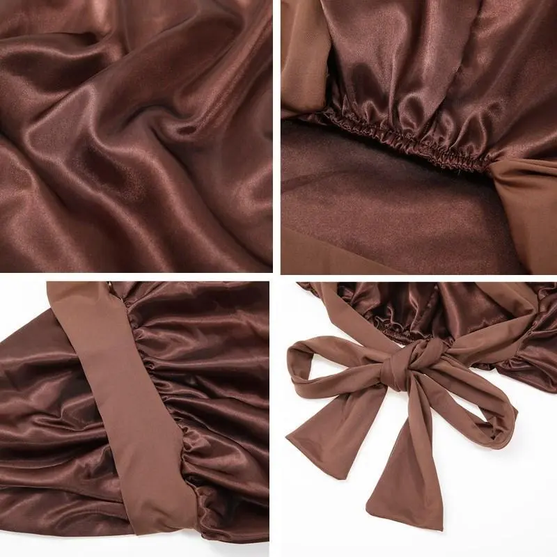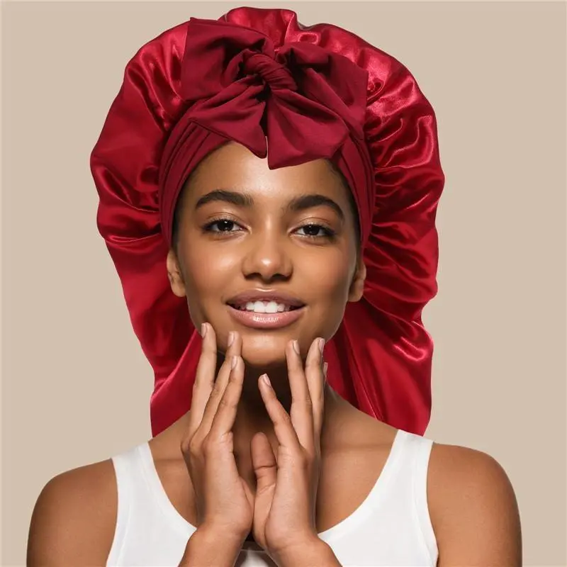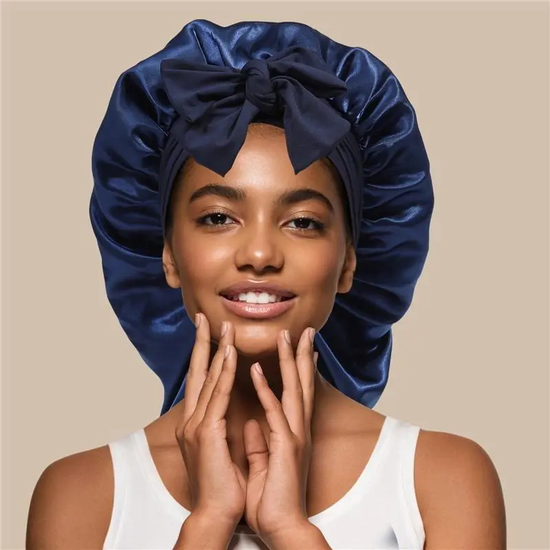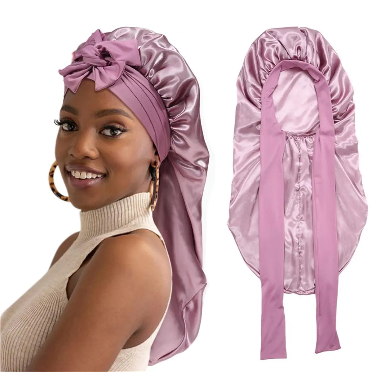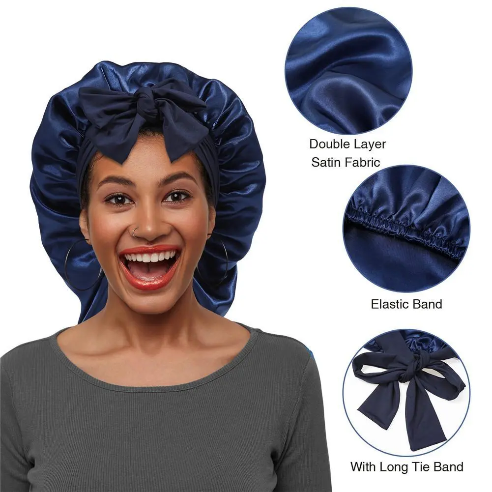 Solid Color Double-Layer Long Satin Bonnet Sleep Cap