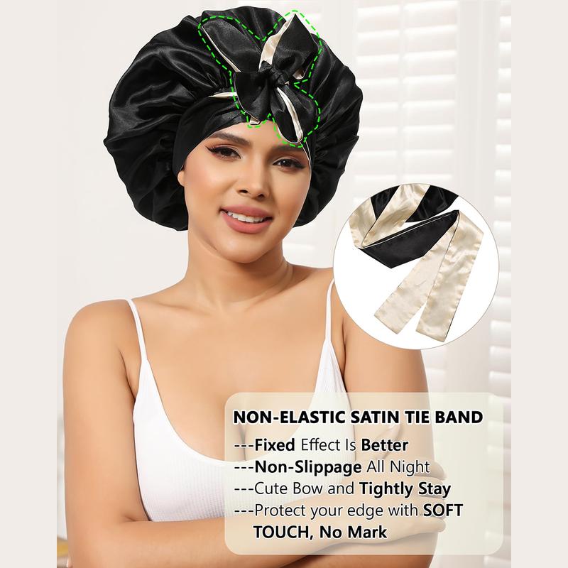 【WHAT WILL YOU GET】Package Contains 1 satin sleep cap. The edge of the large nightcap is a wide, soft and comfortable hair band that won't leave marks on your head.