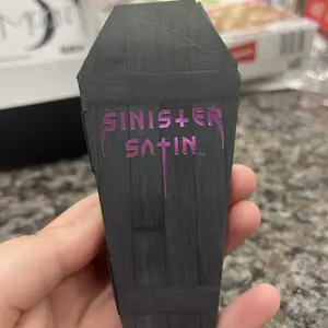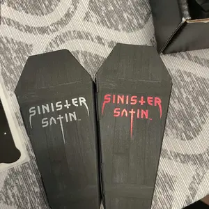 Bought the black lipstick named "Omen" very strong and long lasting pigment with little to no smudge after a few minutes of applying, the coffin packaging was very unique and stylized!!! I'll definitely be keeping the box it came in! 🖤