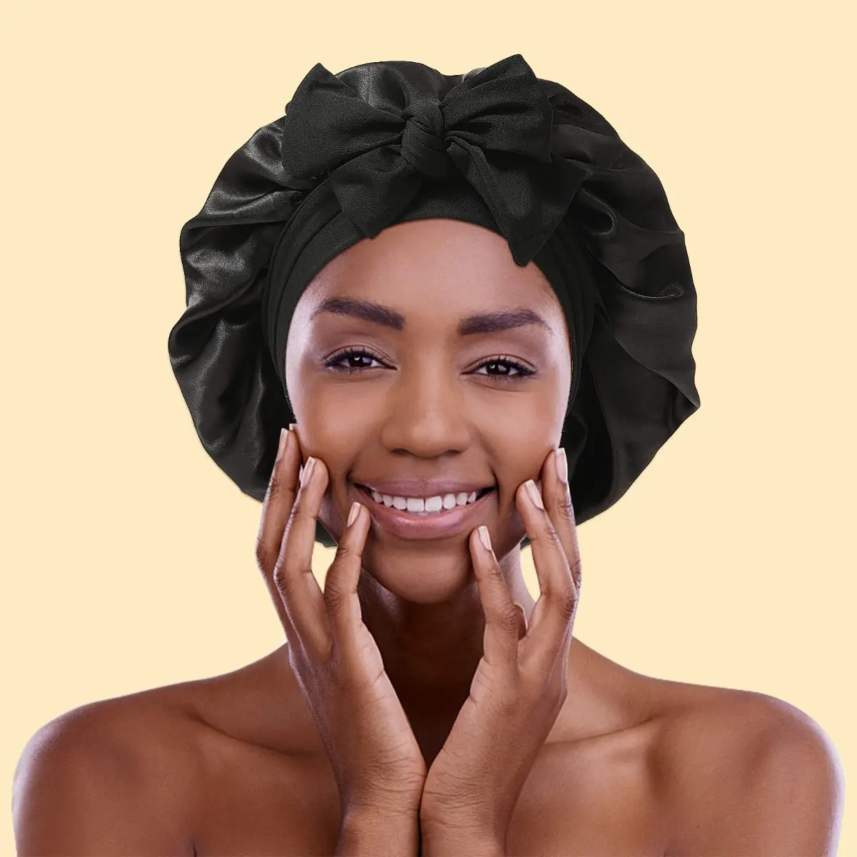 ·Large Satin Bonnet: Holds all hair securely, preventing mess and frizz during sleep, work, cooking, or makeup.