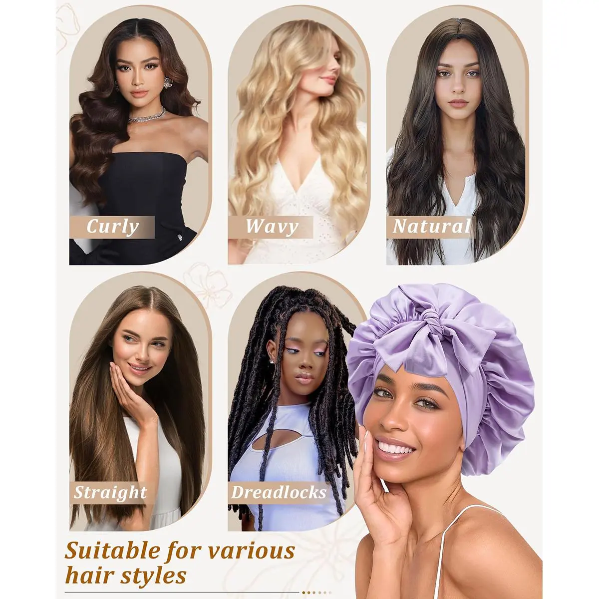 SATIN BONNET CAP VERSATILE: You can wear the large satin hair bonnet wraps to wash your face, take care of your skin, apply makeup, or do housework. This silk-like bonnet for curly hair is not only a silk-like hair cap but can also be used as a cap for cancer and chemotherapy patients
