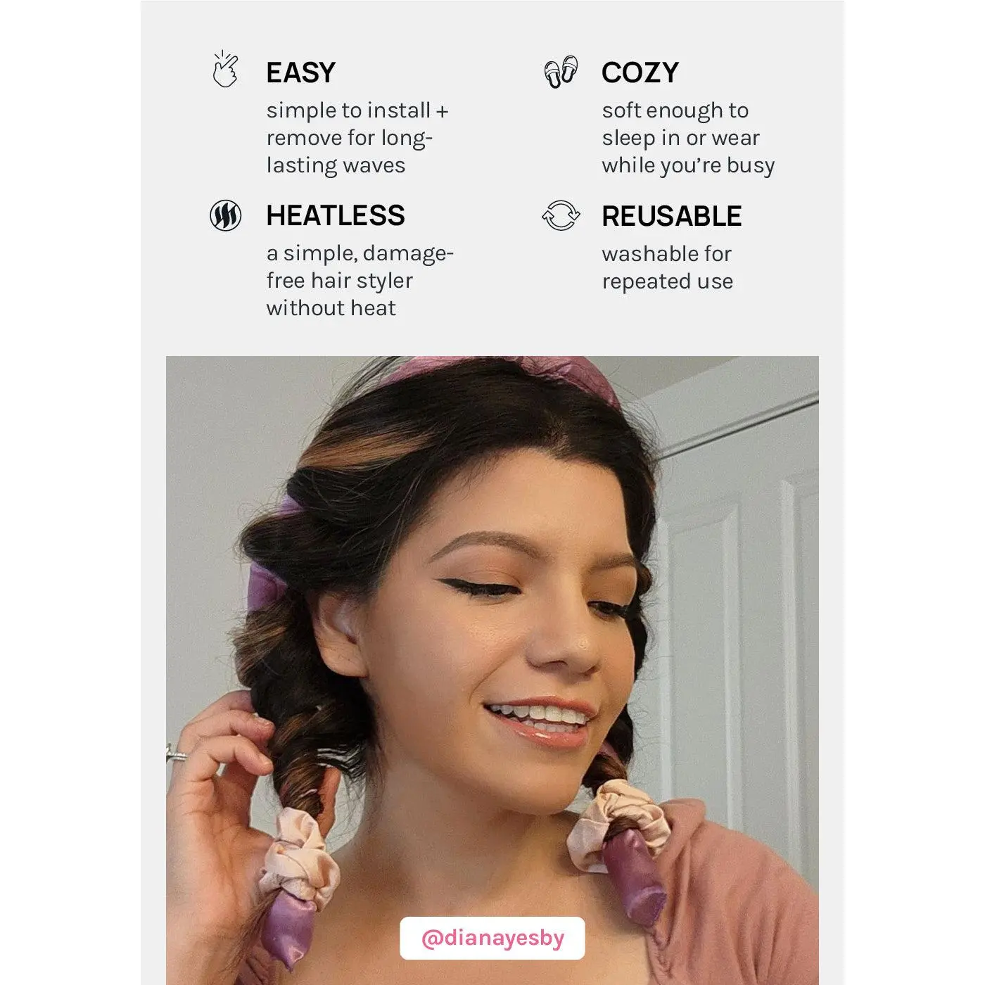 🦋 Heat-free + Gentle ⚡️ Reduces Frizz ♻️ Reusable  👌 Easy Size: