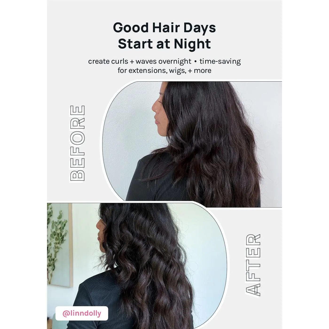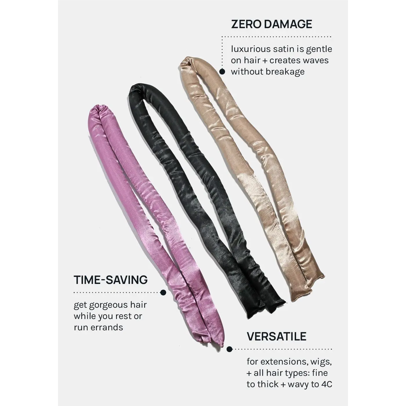 Frizz-free, perfect waves, + curls for all hair types! No matter your style, add heat + damage-free volume to your hair while you sleep, do chores, run errands + more!