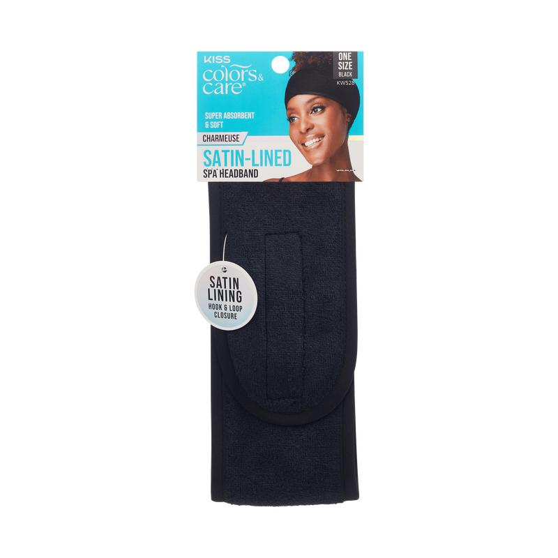 The KISS Colors & Care Satin-Lined Headband is designed with absorbent terry cloth and silky satin lining. Perfect for face washing, makeup application, or skincare routines, it keeps hair dry and protected while reducing friction and breakage.