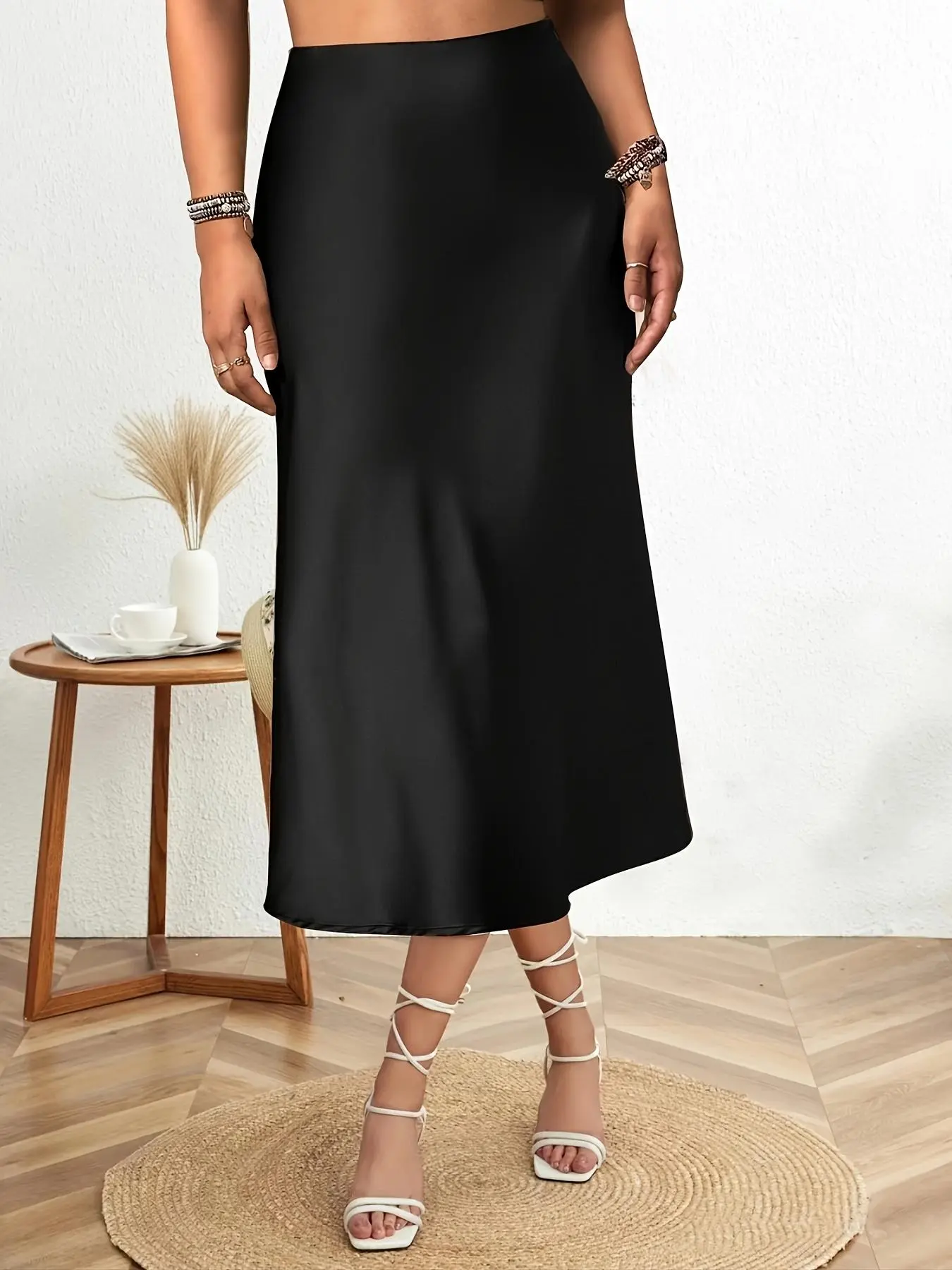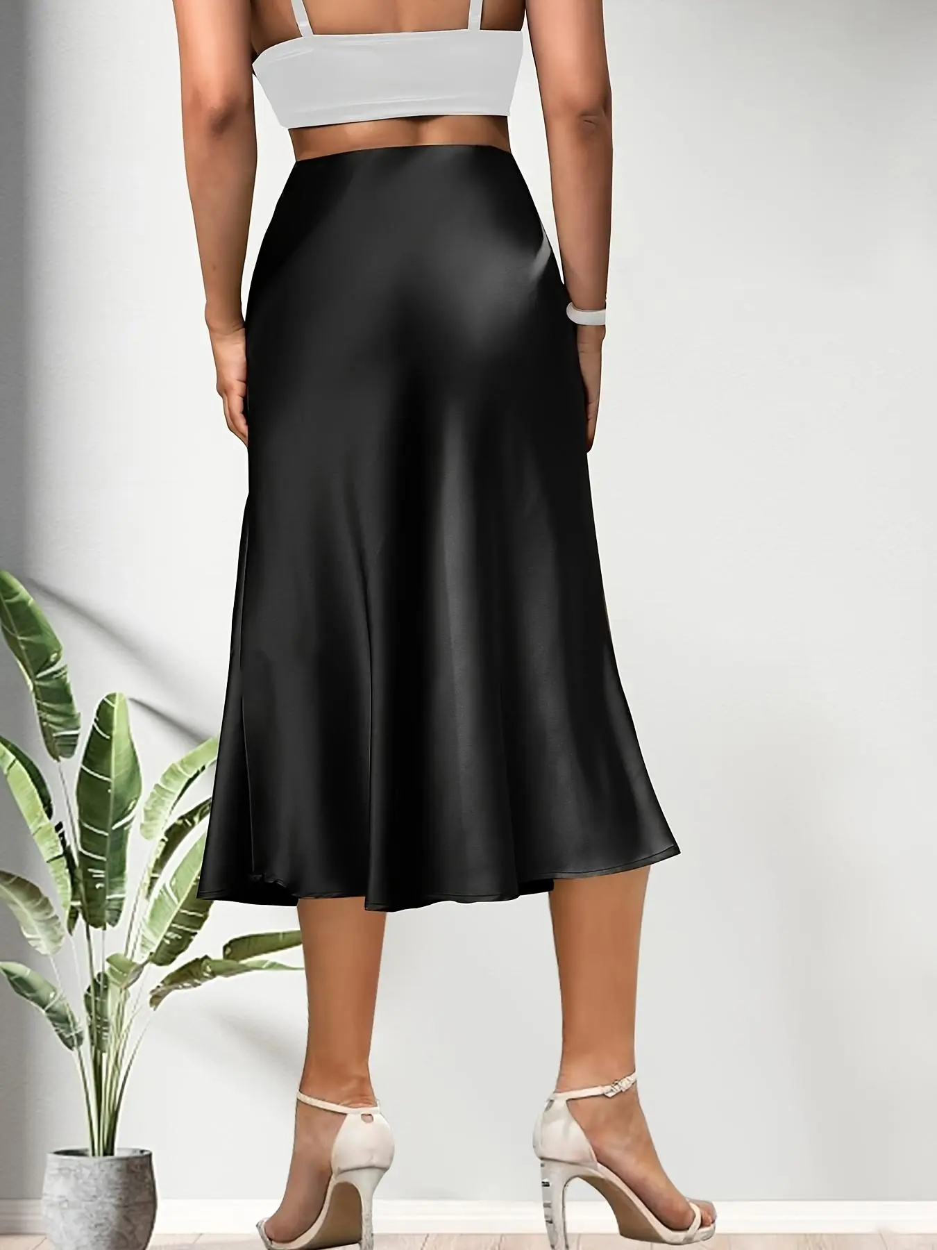 5. Women's Solid Color Side Pocket Satin Skirt, Elegant Fashion Casual High Waist Flared Skirt Design Midi Skirt for Daily Outdoor Wear, Women Bottoms for Summer
