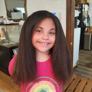 My daughter has natural curly hair, but it can become REALLY frizzy. It does make her hair easier to run the le Vite through her hair and her hair turns out soft and not frizzy.