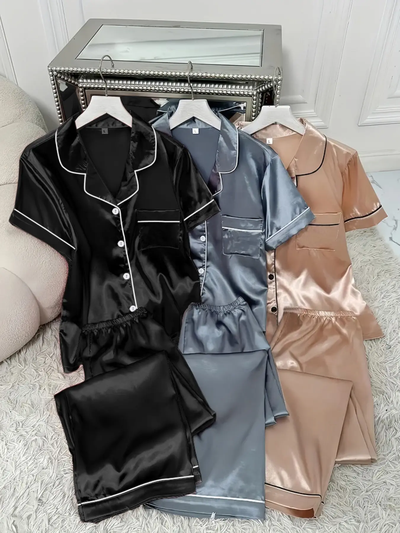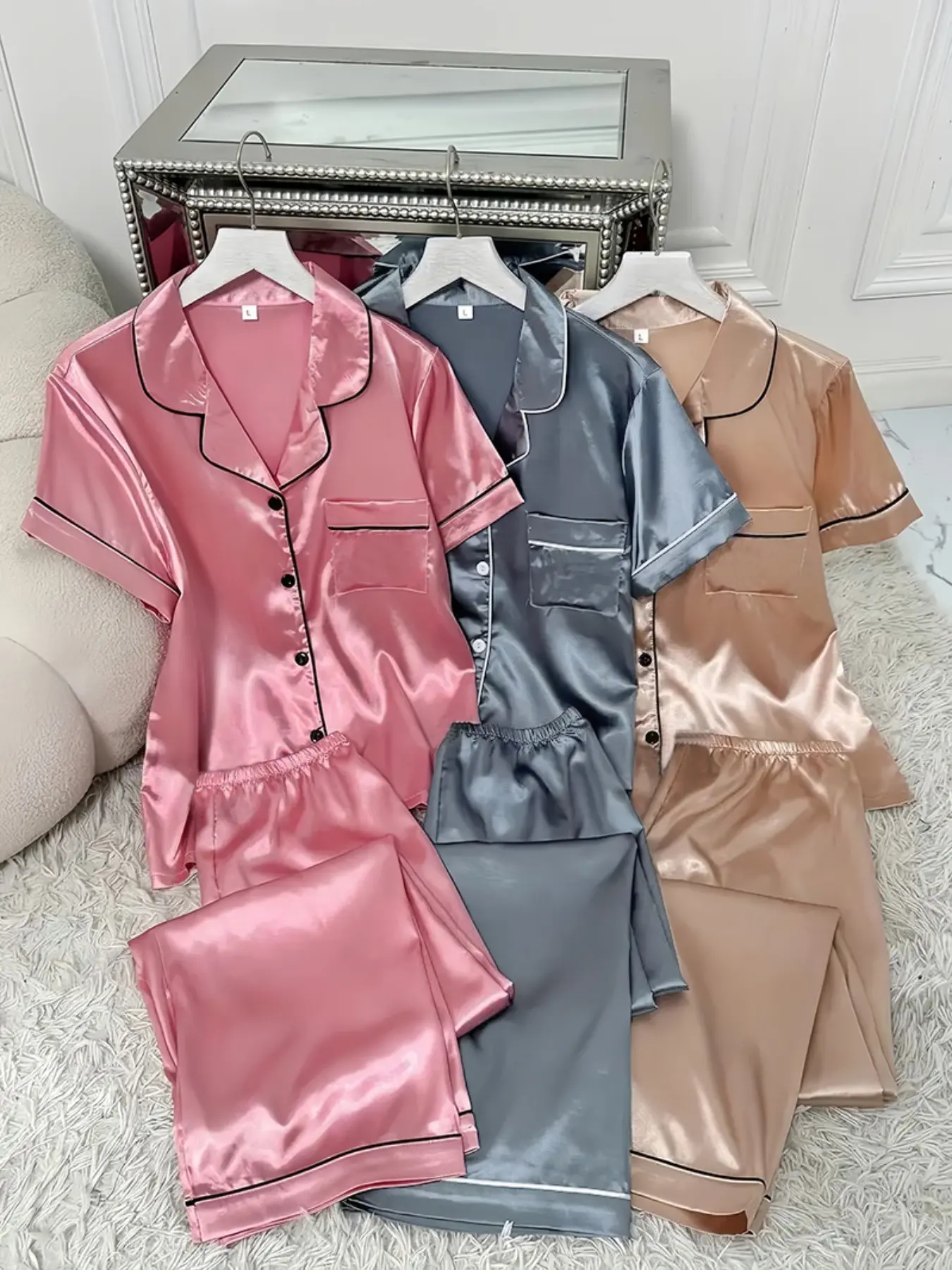Me gustaron muchos los juegos de dormir tienen una lela satinada quedan muy cómodos pero si usas m compra la L para q quede suerto pero por lo demás están súper buenos lo recomiendo