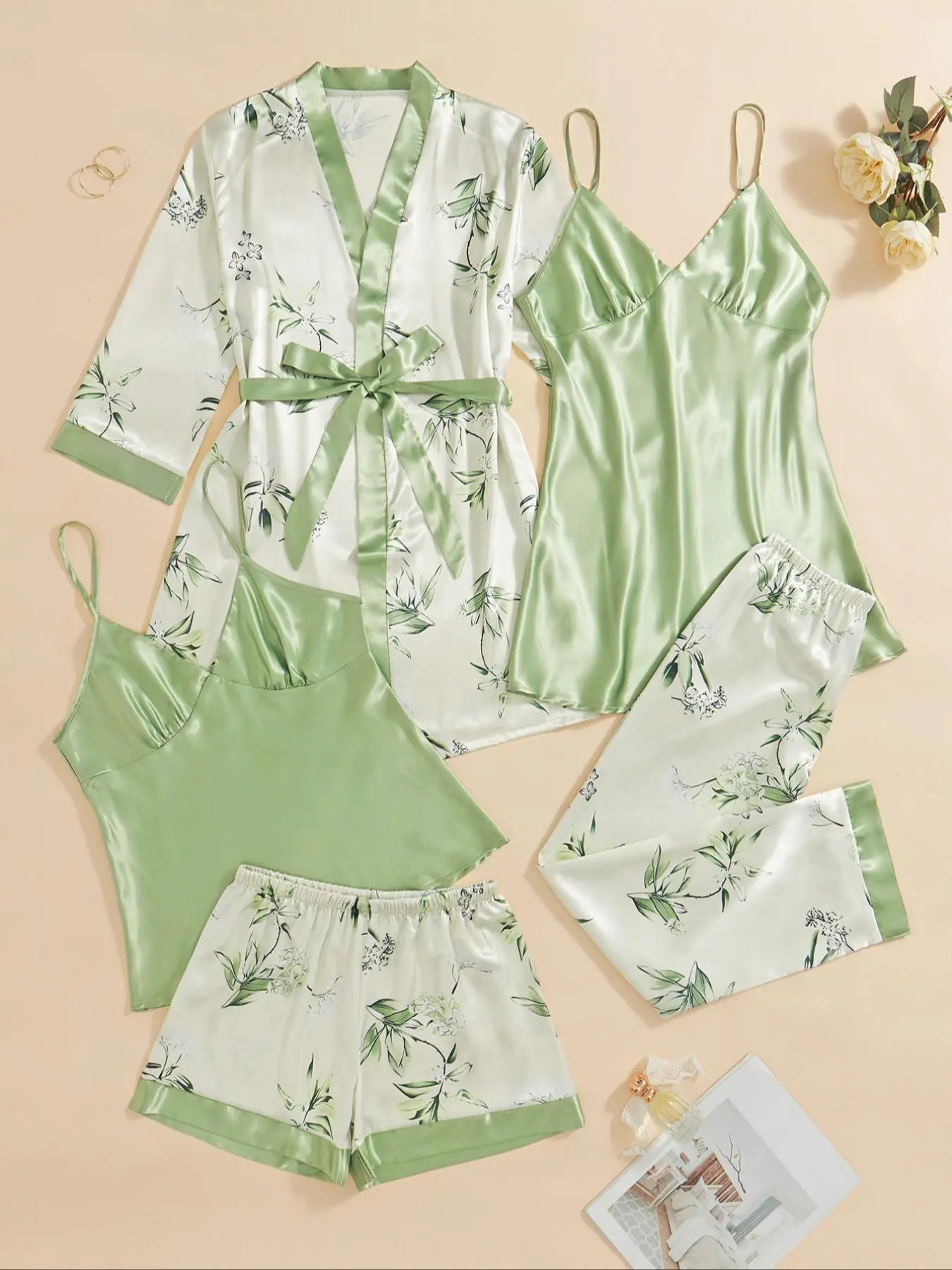 Esta es mi tercero set de pijamas qué pido, por su buena calidad son de seda satin muy buena calidad la talla corre correcta el color estampado está precioso tienen variedad de colores super recomendados el precio está super bueno resives 5 piezas por un buen precio