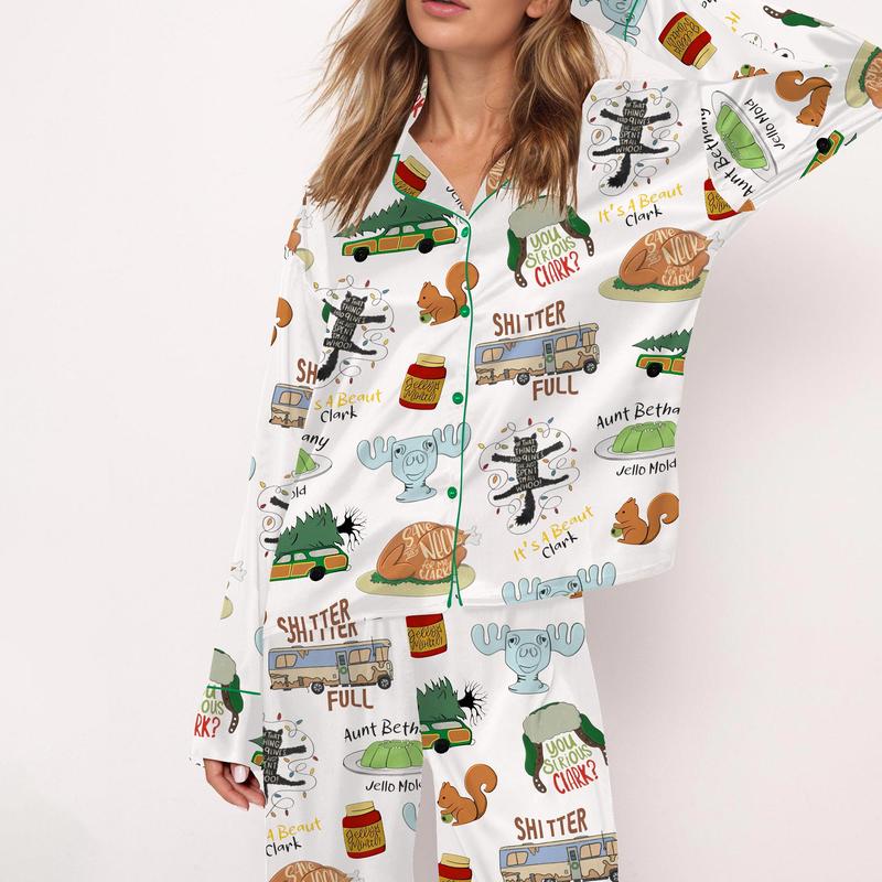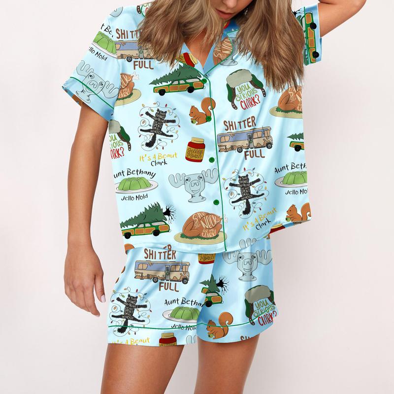 5. SHESHOW It's A Beaut Clark Christmas Vacation Satin Pajama Set For Women Print Comfy Satin Sleepwear & Loungewear Pjs Printing Silky Top & Bottoms Fallfreshness