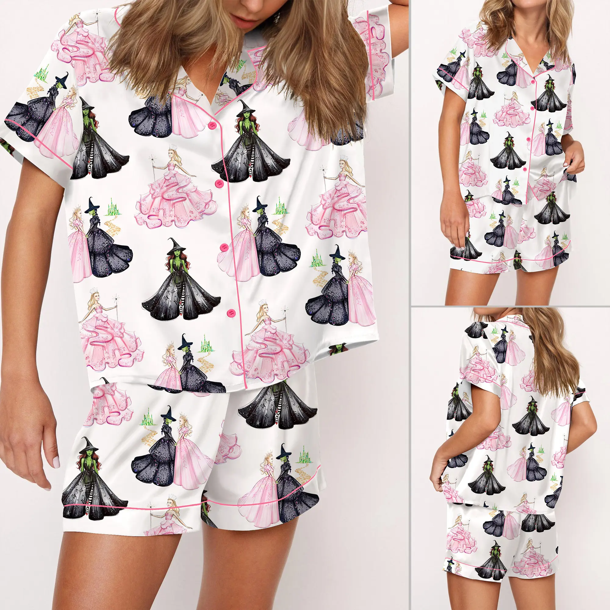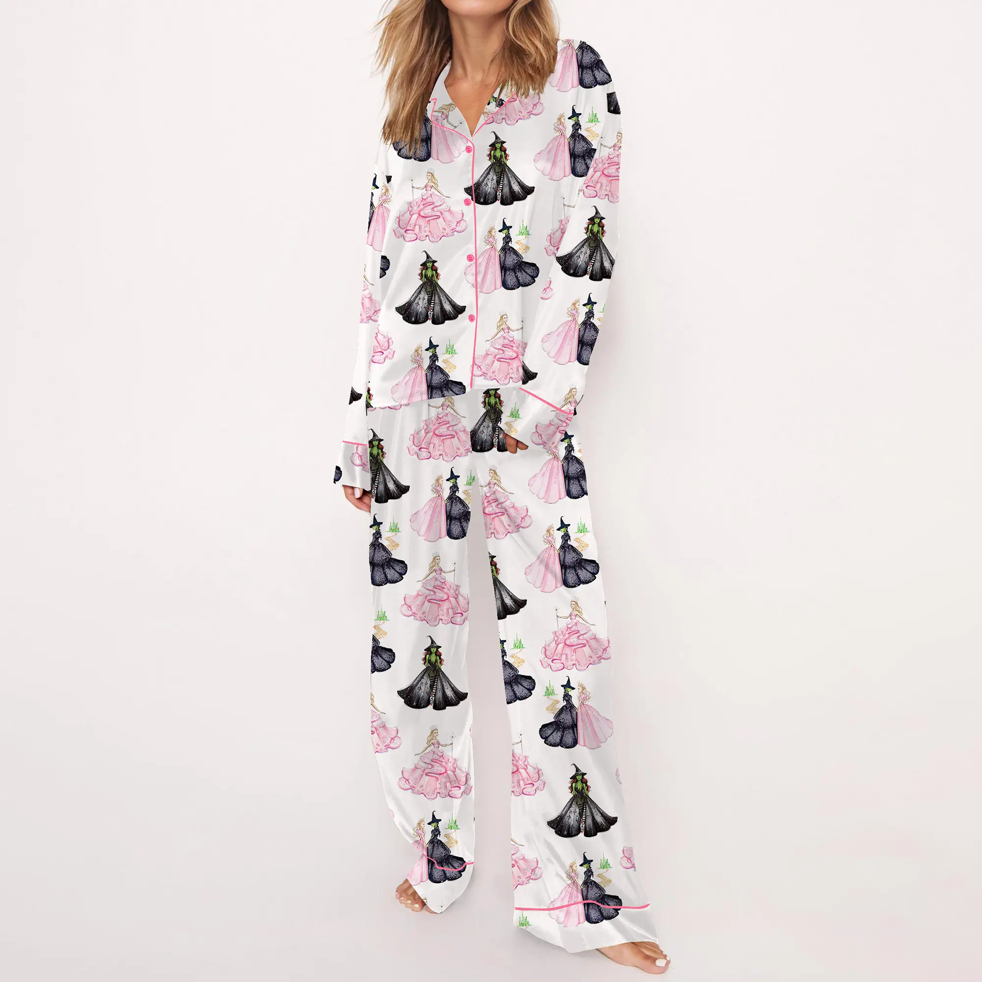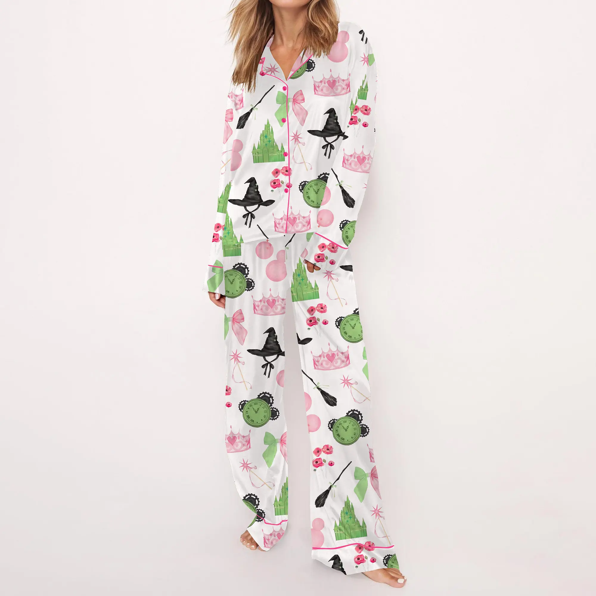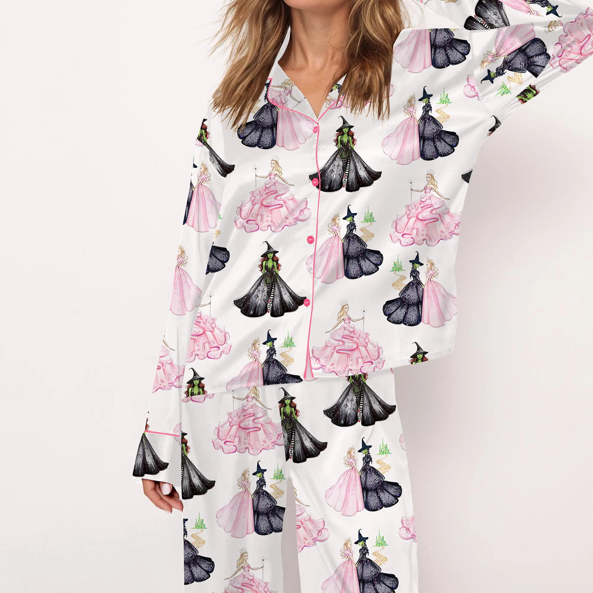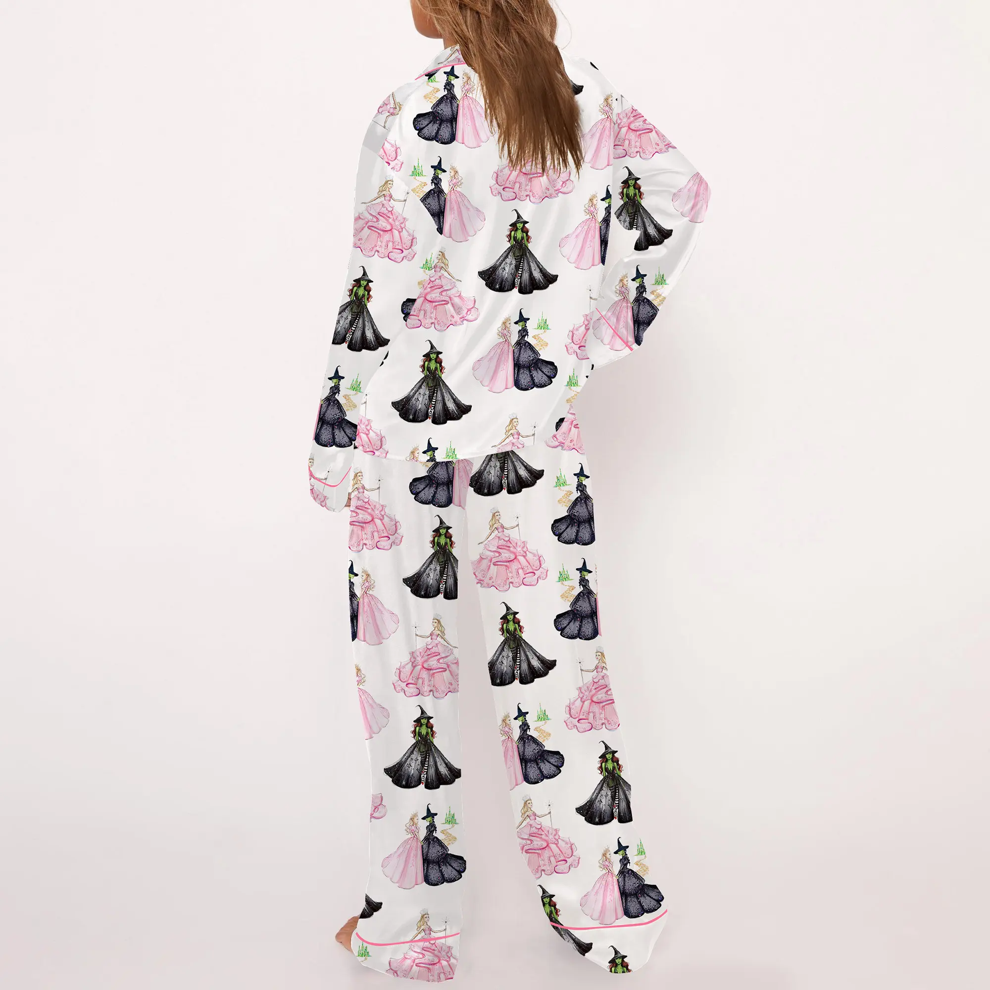 These are adorable! Soft and comfortable to wear, and I have to give props to the designer, who really went above and beyond with the tiny details in this creation — I absolutely love this “Wicked” patterned fabric! These pajamas are a must-have for any devoted fans of the film or Broadway musical.