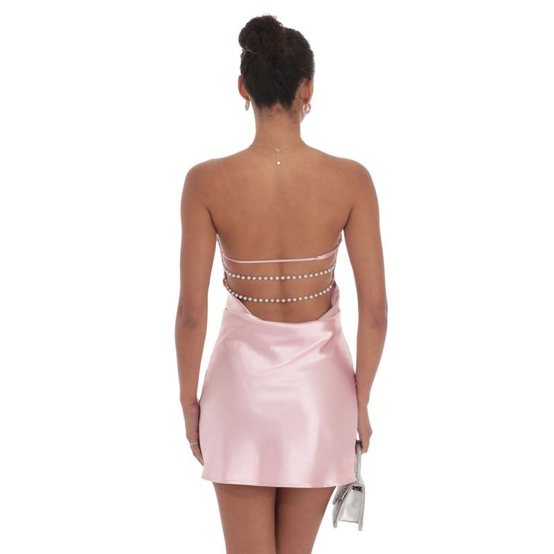 Let’s hear it for the back of the dress😍🥹 @Lucy in the Sky Los Angeles #lucyinthesky #lucyintheskystore #minidress #hocodress #homecomingdress #formaldress #satinminidress #satindress #backlessdress #pinkdress #pearls #viraldress #openbackdress #trending #womensdresses