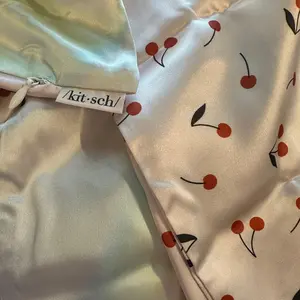been on a kitch kick lately. so i had to get a new satin pillow case! love the cherries. love that it has a zipper so i don’t have to worry about it coming off in my sleep. got it on a deal on a live. fast shipping. so soft & nice on hair & skin. 10/10 recommend