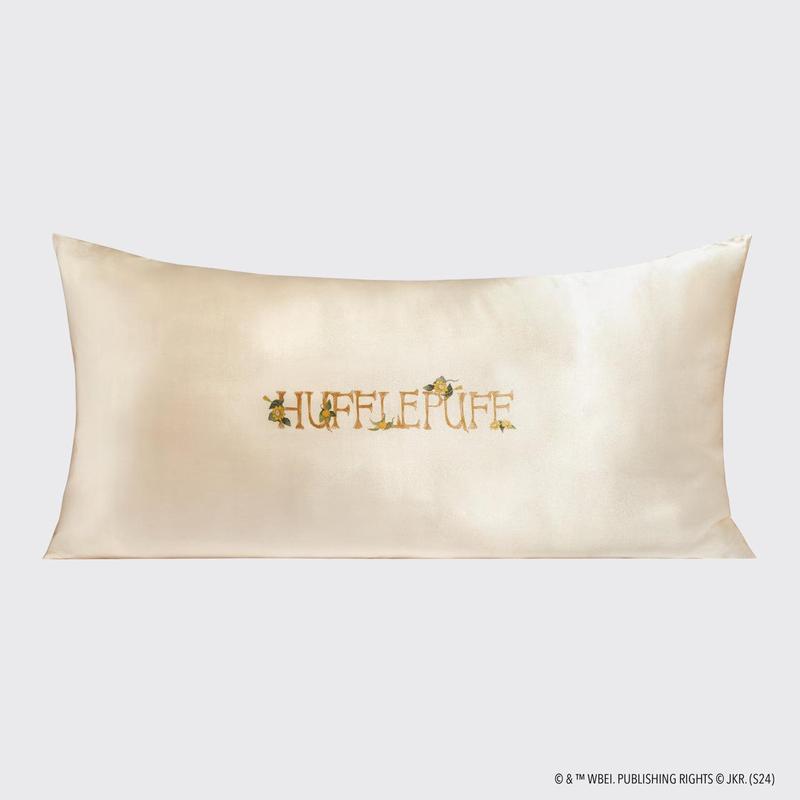 ·Get your beauty sleep and rep your Hogwarts House pride with this double-sided satin pillowcase printed with Hufflepuff’s iconic badger crest on the front and “Hufflepuff” on the back