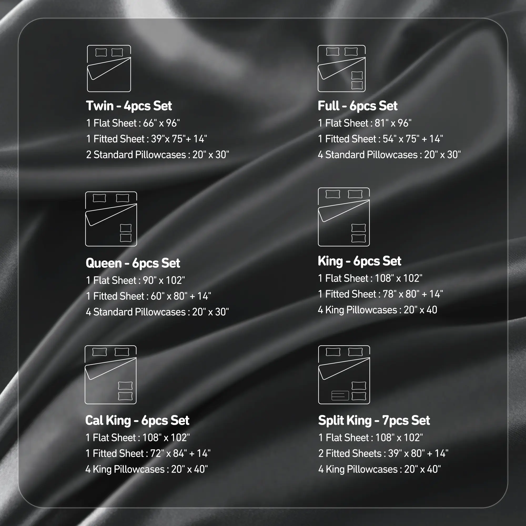 ·Queen: 1 Flat Sheet (90x102") + 4 Pillowcases (20x30") + 1 Fitted Sheet (60x80"+14").