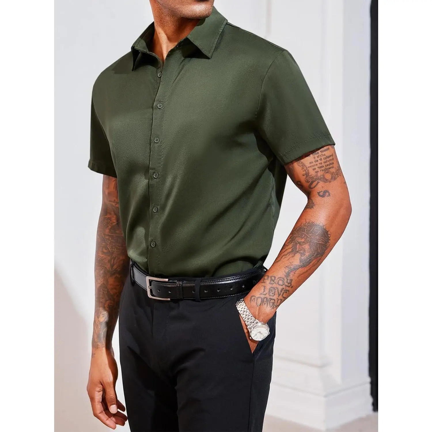 PASLTER Mens Luxury Satin Silk Dress Shirts Casual Button Down Short Sleeve Prom Party Wedding ShirtPASLTER Mens Luxury Satin Silk Dress Shirts Casual Button Down Short Sleeve Prom Party Wedding ShirtPASLTER Mens Luxury Satin Silk Dress Shirts Casual Button Down Short Sleeve Prom Party Wedding Shirt