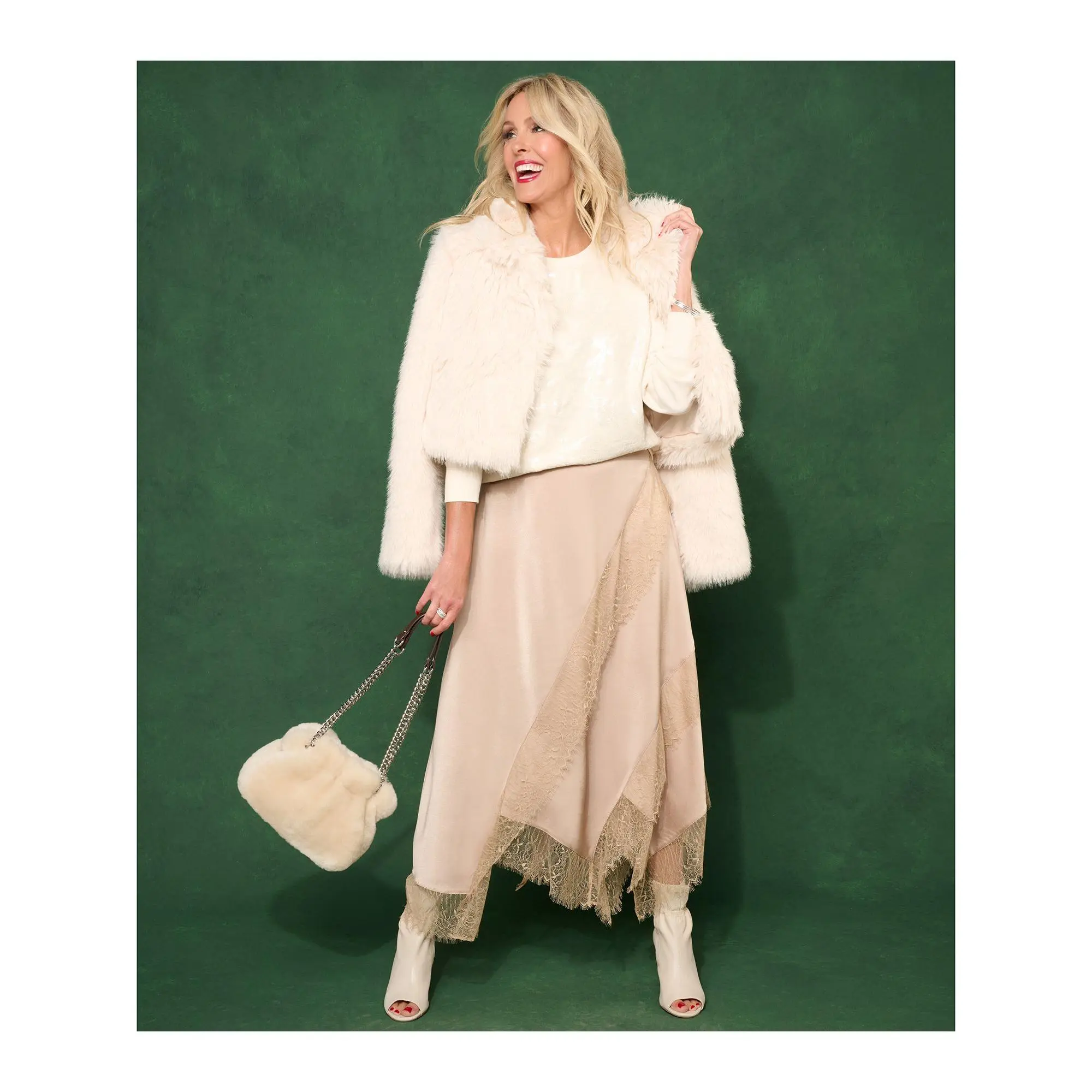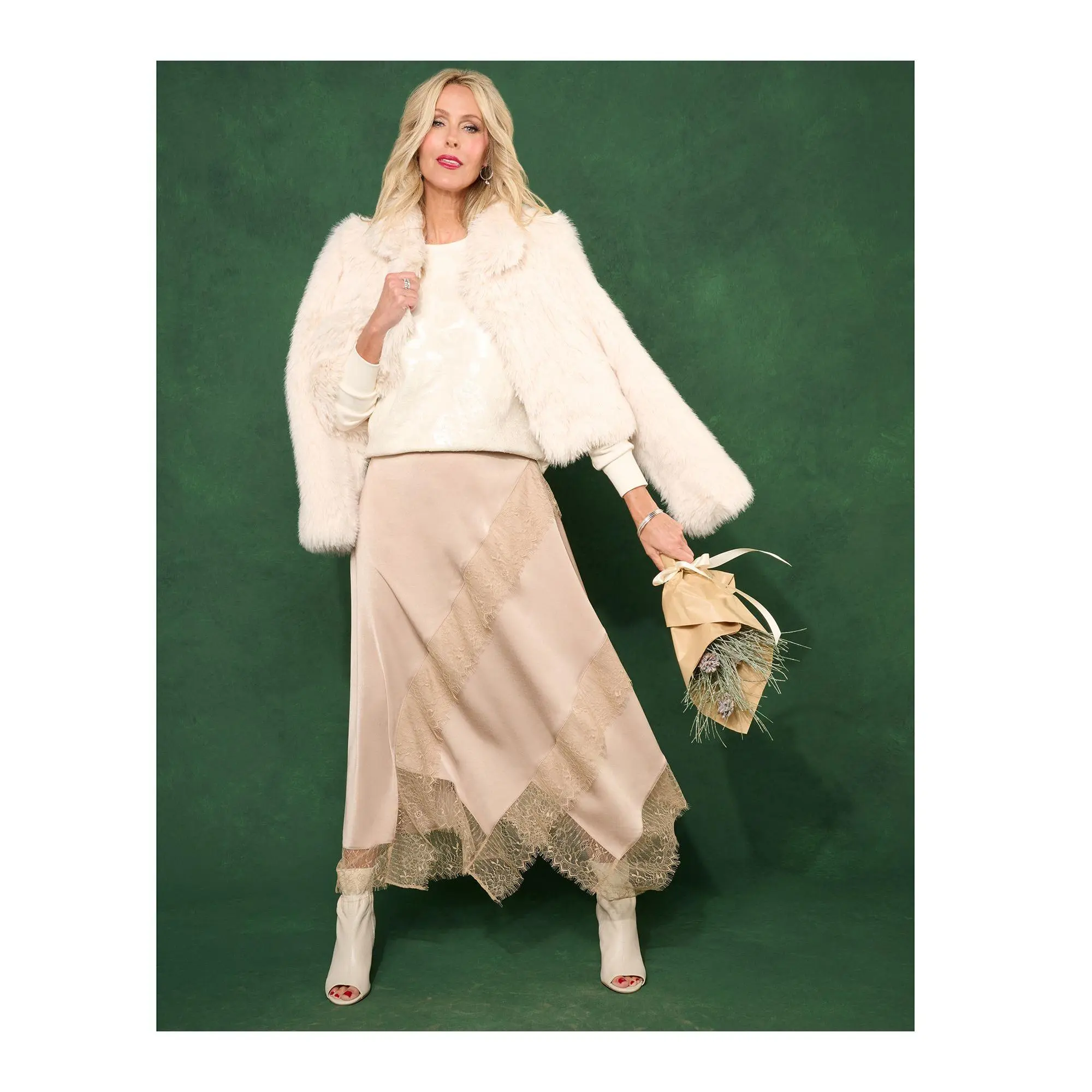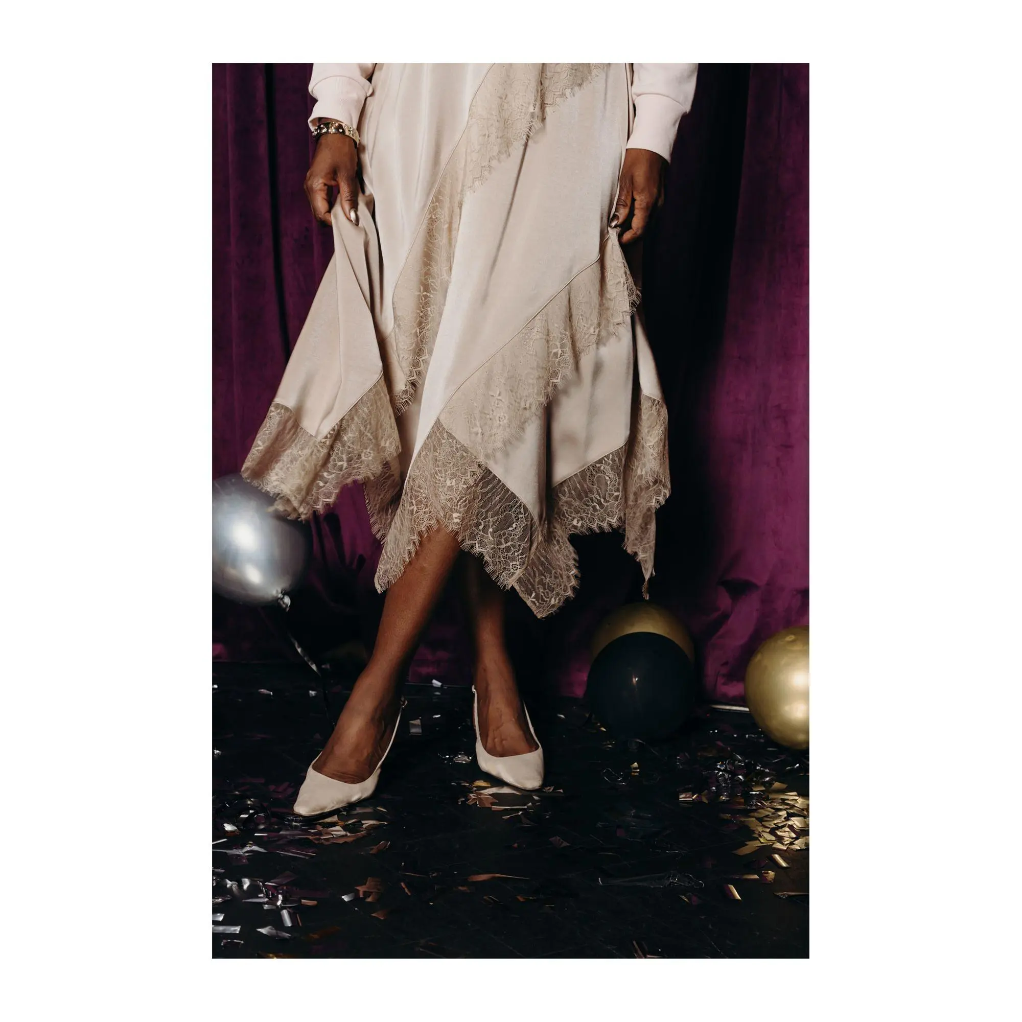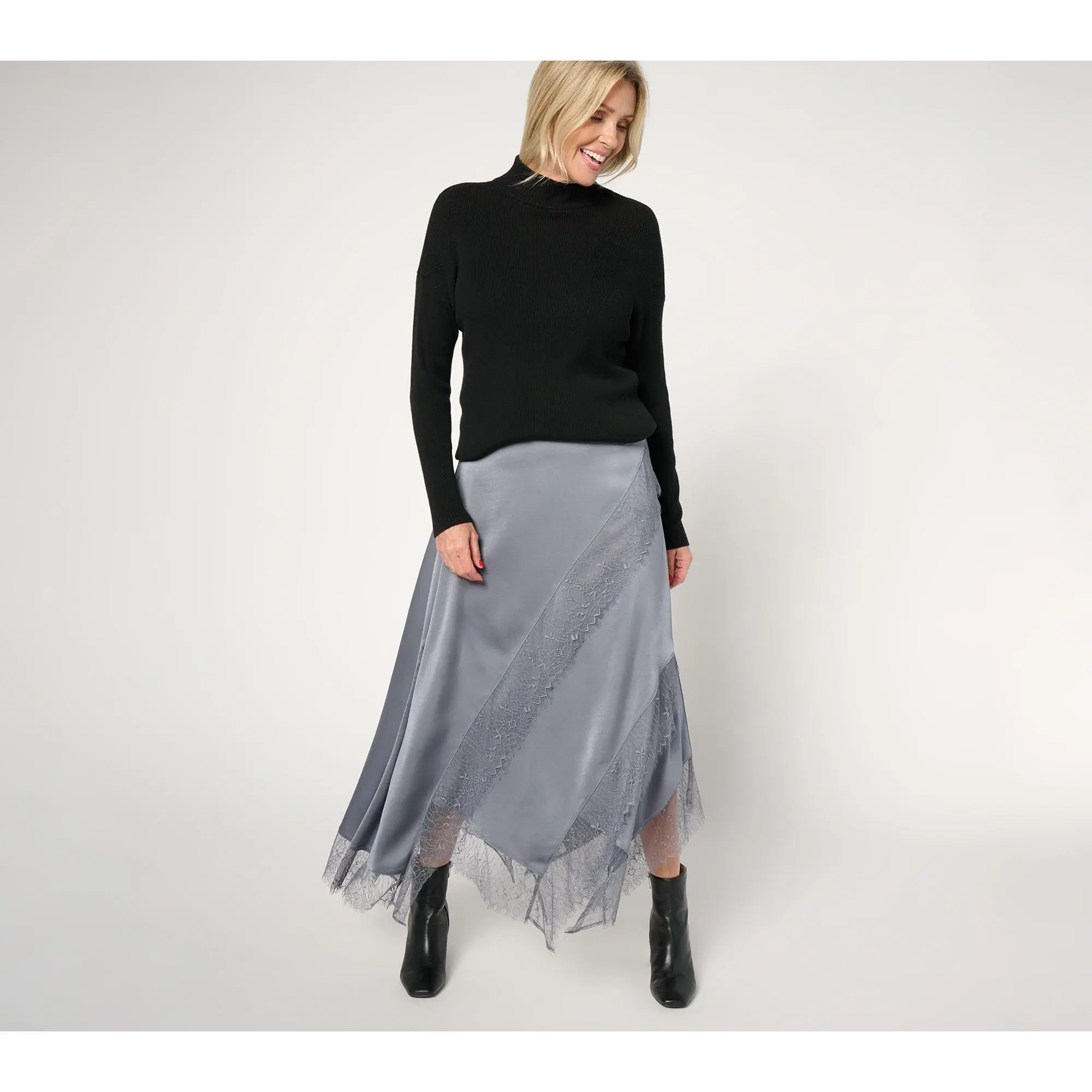 Update your closet with this trend-smart lace-trimmed satin skirt -- and make any day feel like a