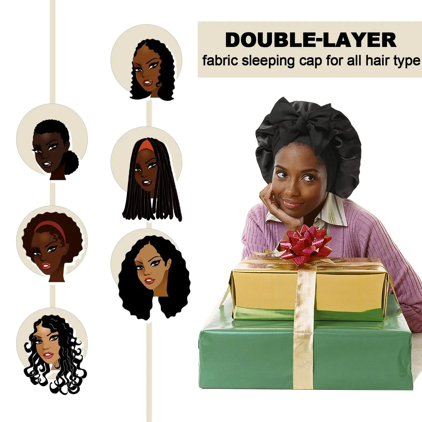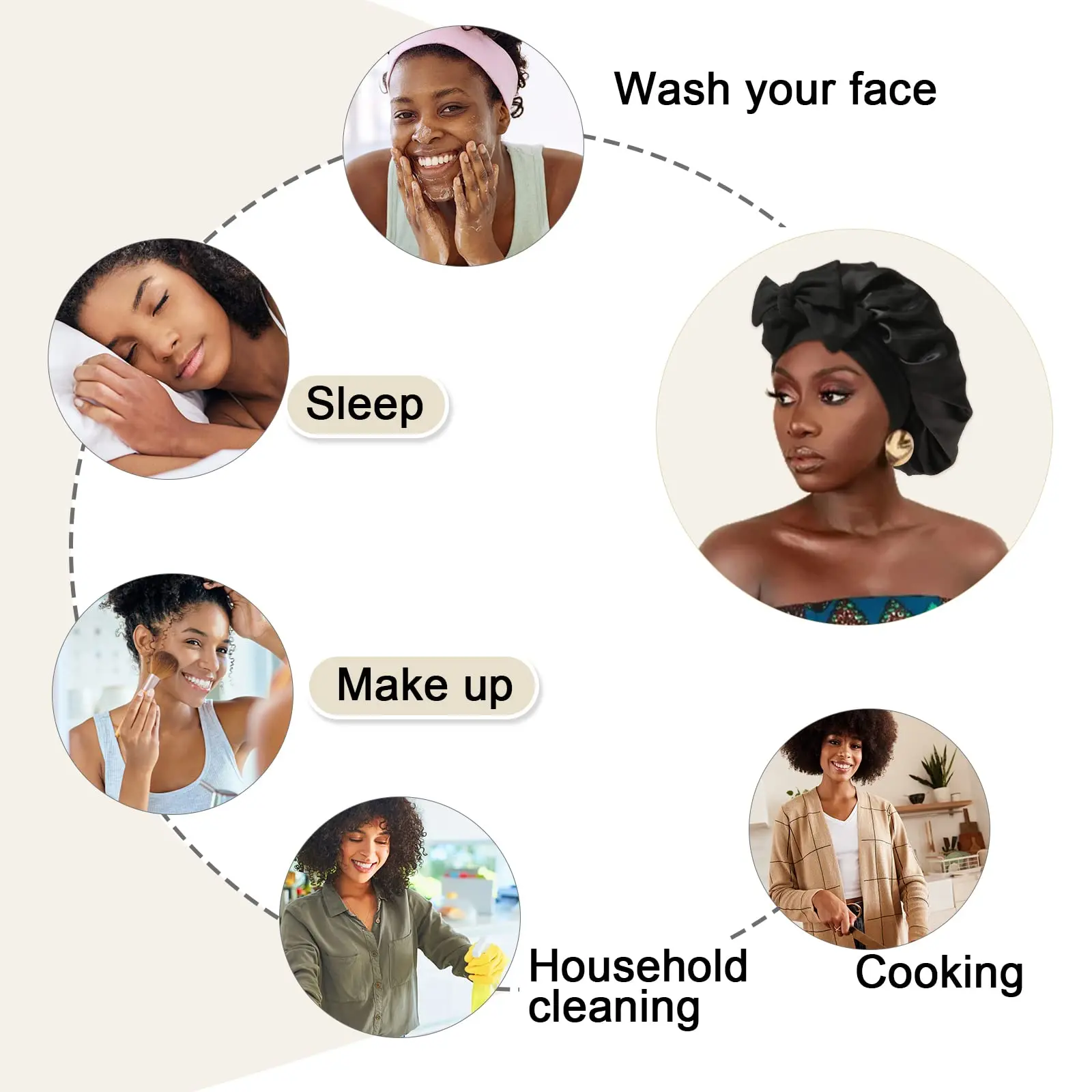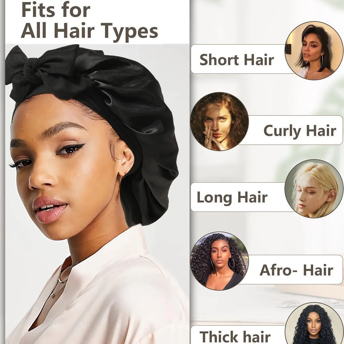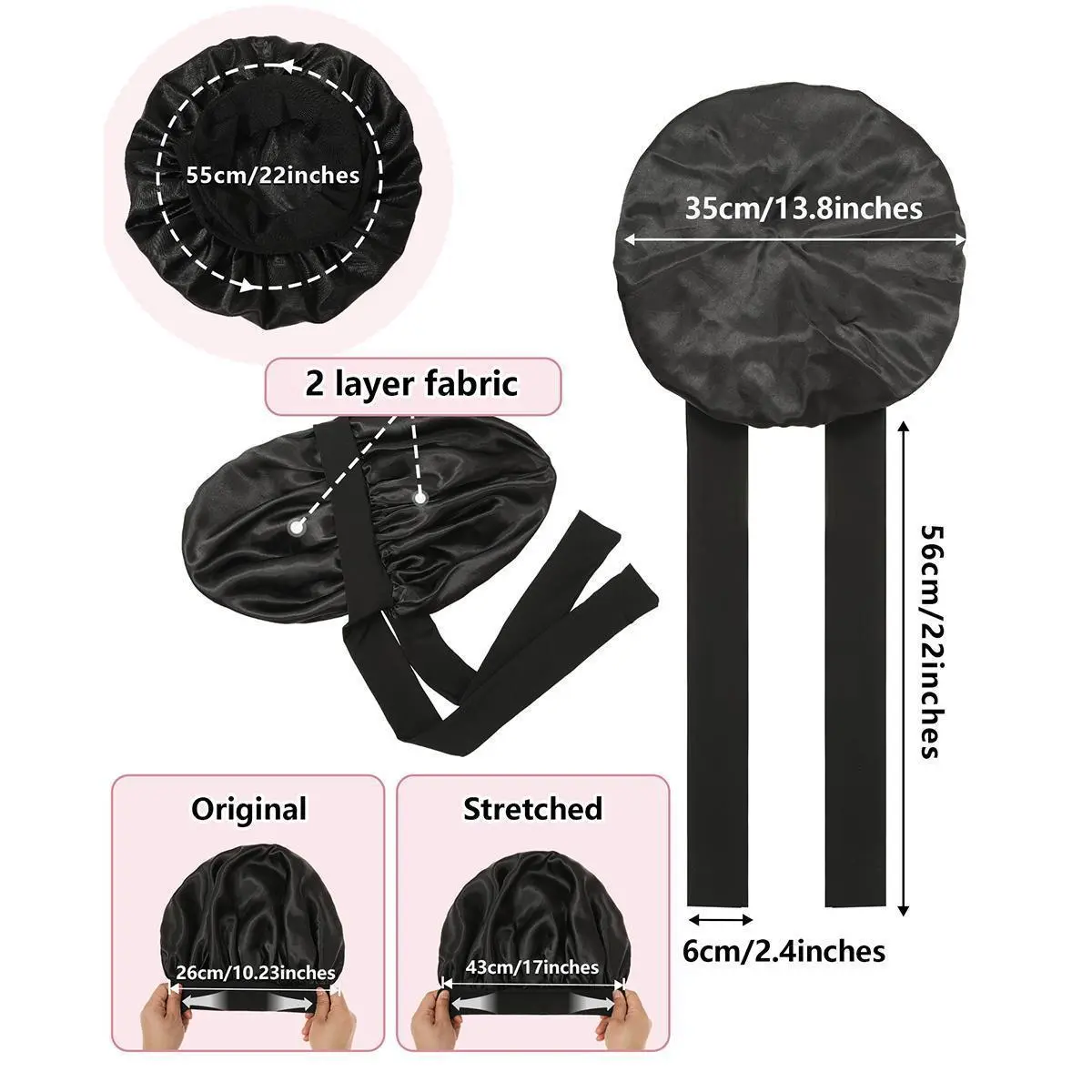 【Double layer satin bonnet design】 The large hair bonnet cap has excellent malleability for all people, and the wide and long hair band is used to adjust the size and maintain comfort. Large silk bonnet for long, straight, curly, wavy, fluffy hair and more. This silk sleeping cap is an ideal gift for your family, mom, sisters, BFF and etc