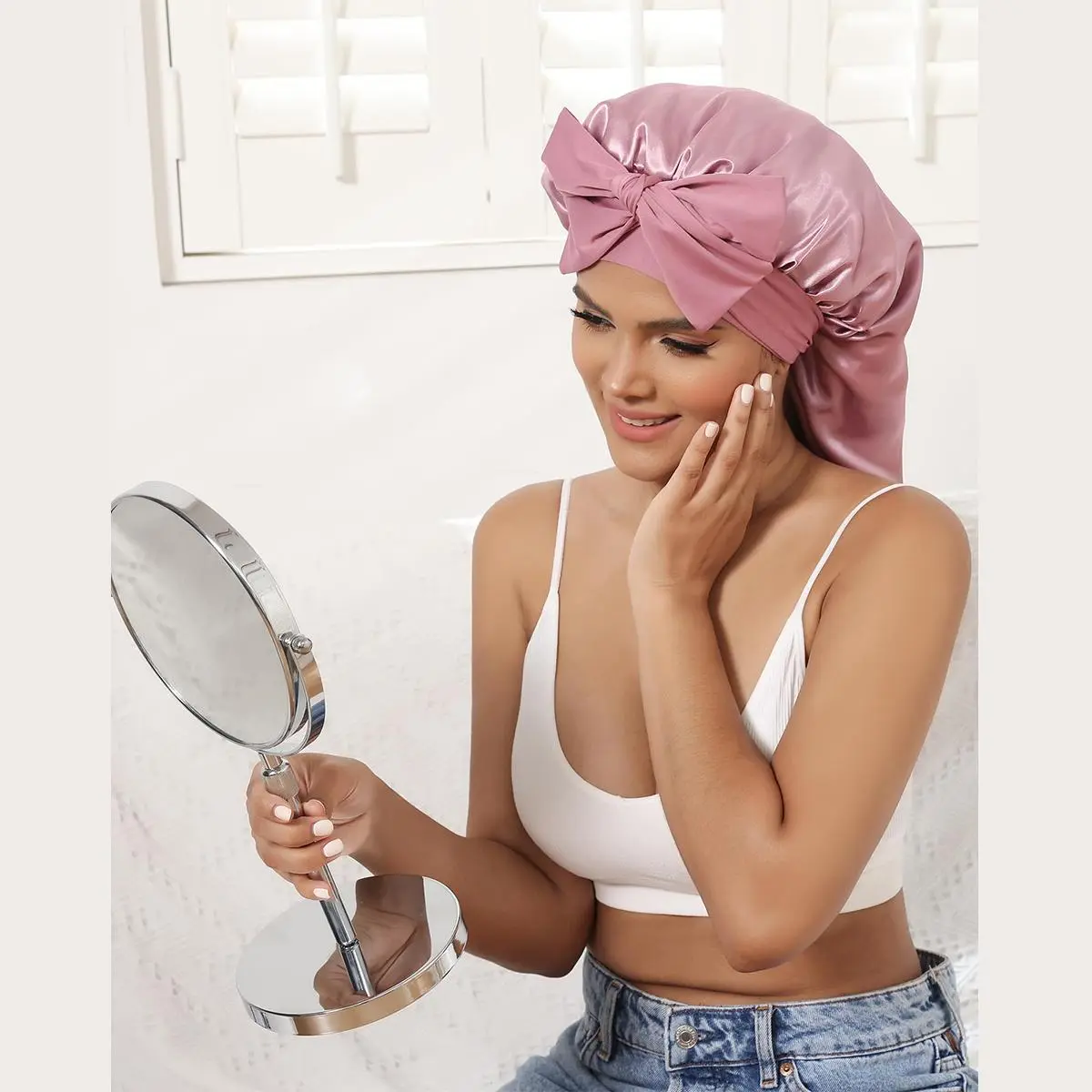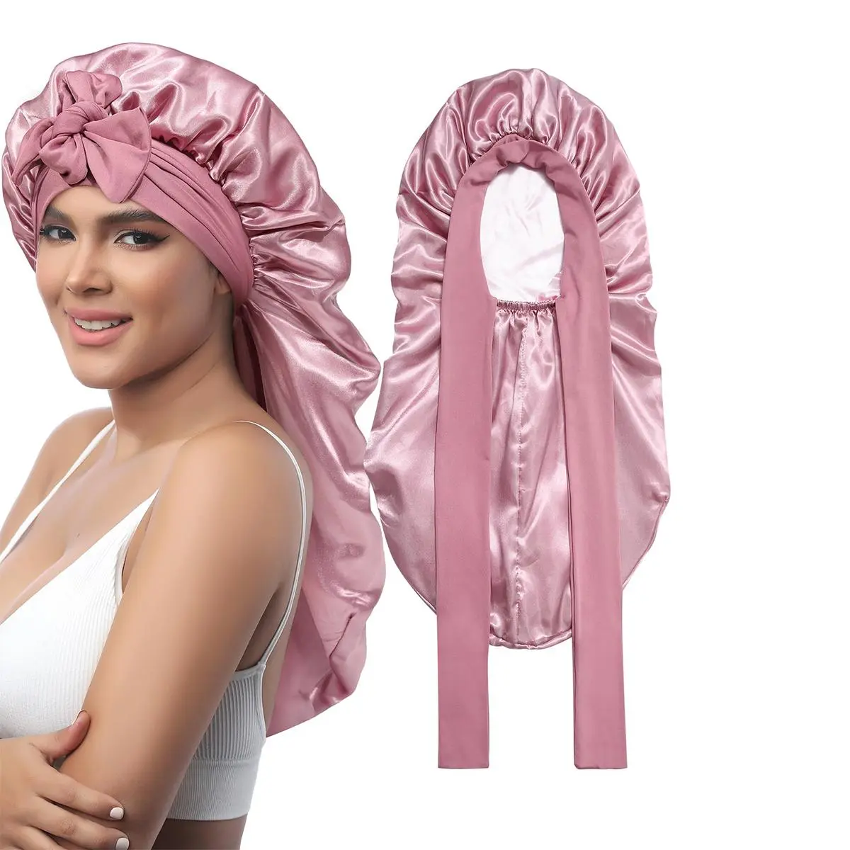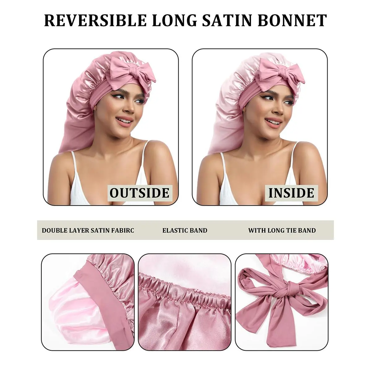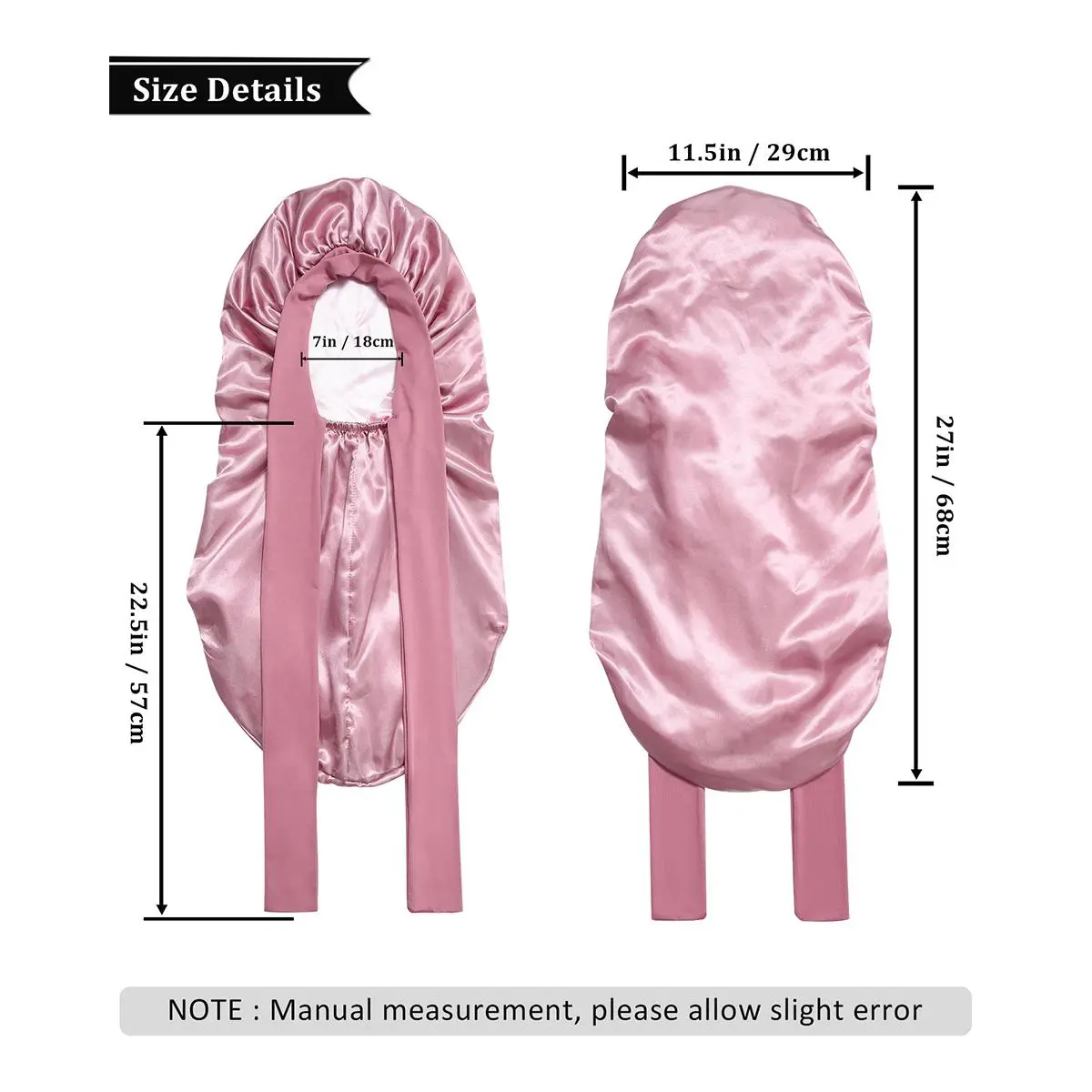 【Suitable for long hair】 - women's long hat has 2 long elastic bands, which can fix the satin hat and better fit the head; The sleeping cap is long enough to accommodate long hair, which is very suitable for people with long hair.