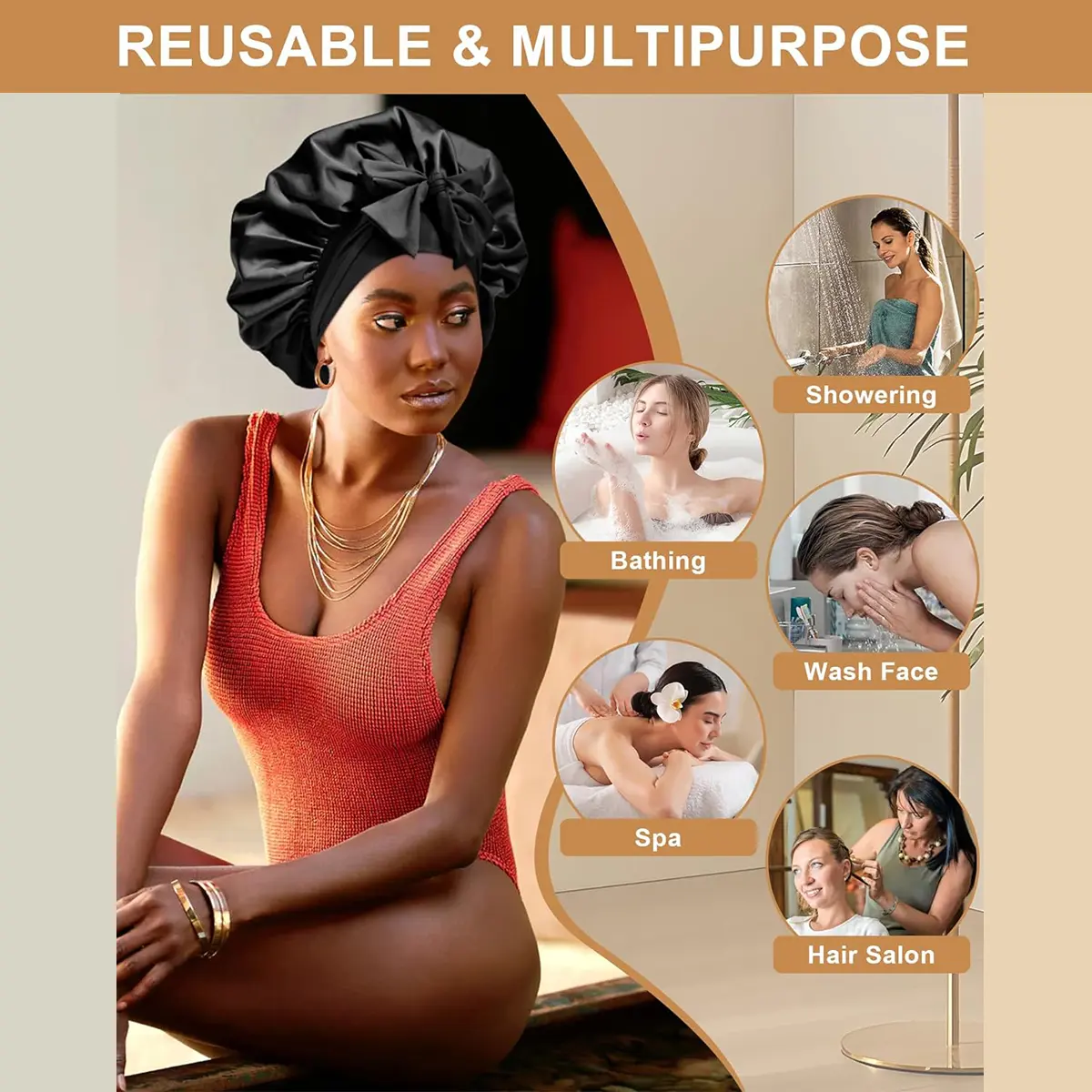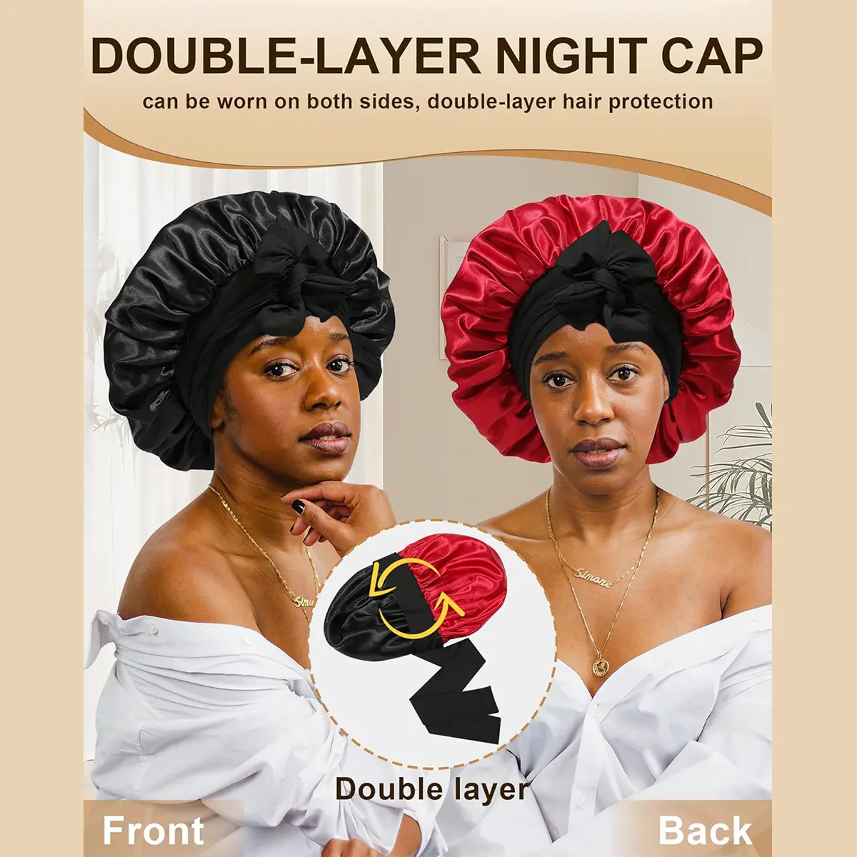 [Premium Satin Reusable Double-Layer Sleep Cap] Satin cap is made of high-quality, lightweight 100% polyester fabric, soft and breathable. Double-layer nightcap, can be worn on both sides, double-layer hair protection.