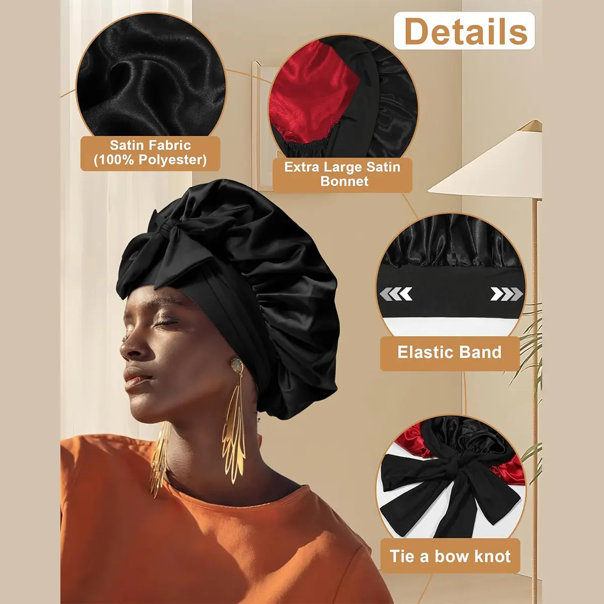 [Tips] The satin can be washed by hand with cold water and mild soap, and placed flat or hung to dry. After receiving the bonnet, please clean it with cold water before wearing it to avoid fading. If you have any questions, please feel free to contact us, we will try our best to help you.