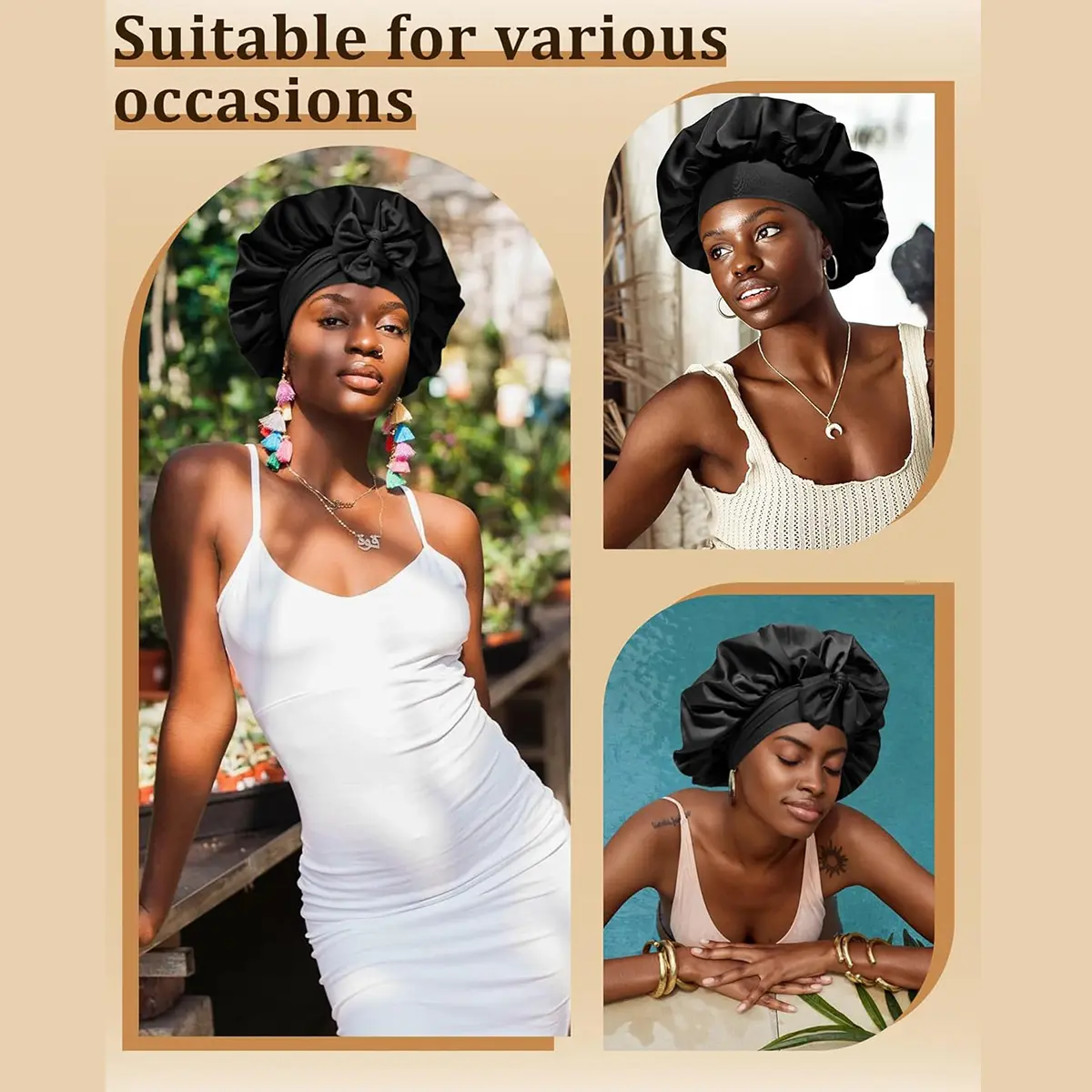 [Oversize] The size of the satin oversize hat is 40 cm/15.75 inch. The size is enough to accommodate a variety of hairstyles, including braids, curls, natural hair, braids, waves, long hair, and hairstyles.