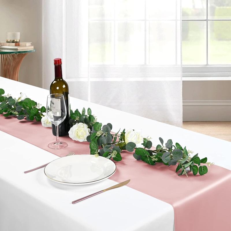 The table runner is made of delicate satin with smooth appearance, it also has a natural sense of drooping style, not easy to fade, not shrink thus reusable. Satin has an unsurpassed sophistication and charismatic appeal, making it undoubtedly the most preferred fabric adored.