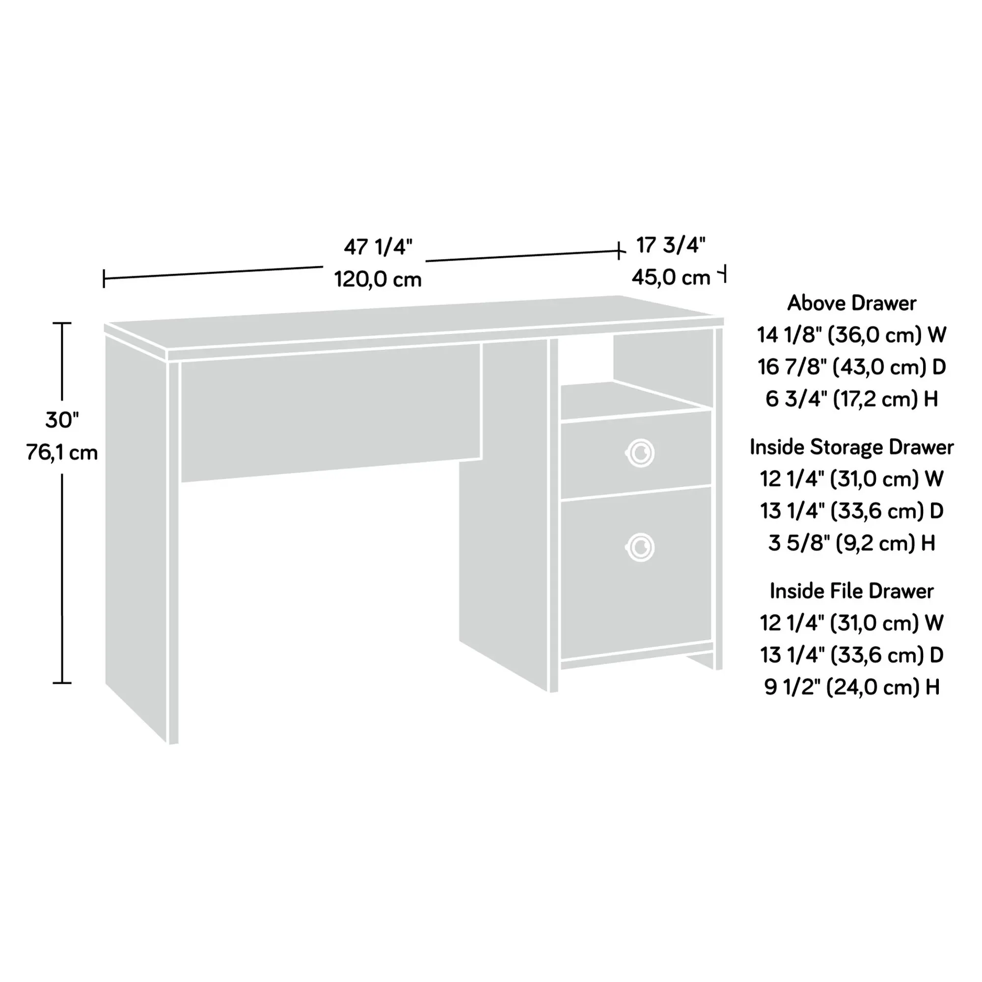 ·File drawer: Holds letter-size hanging files.
