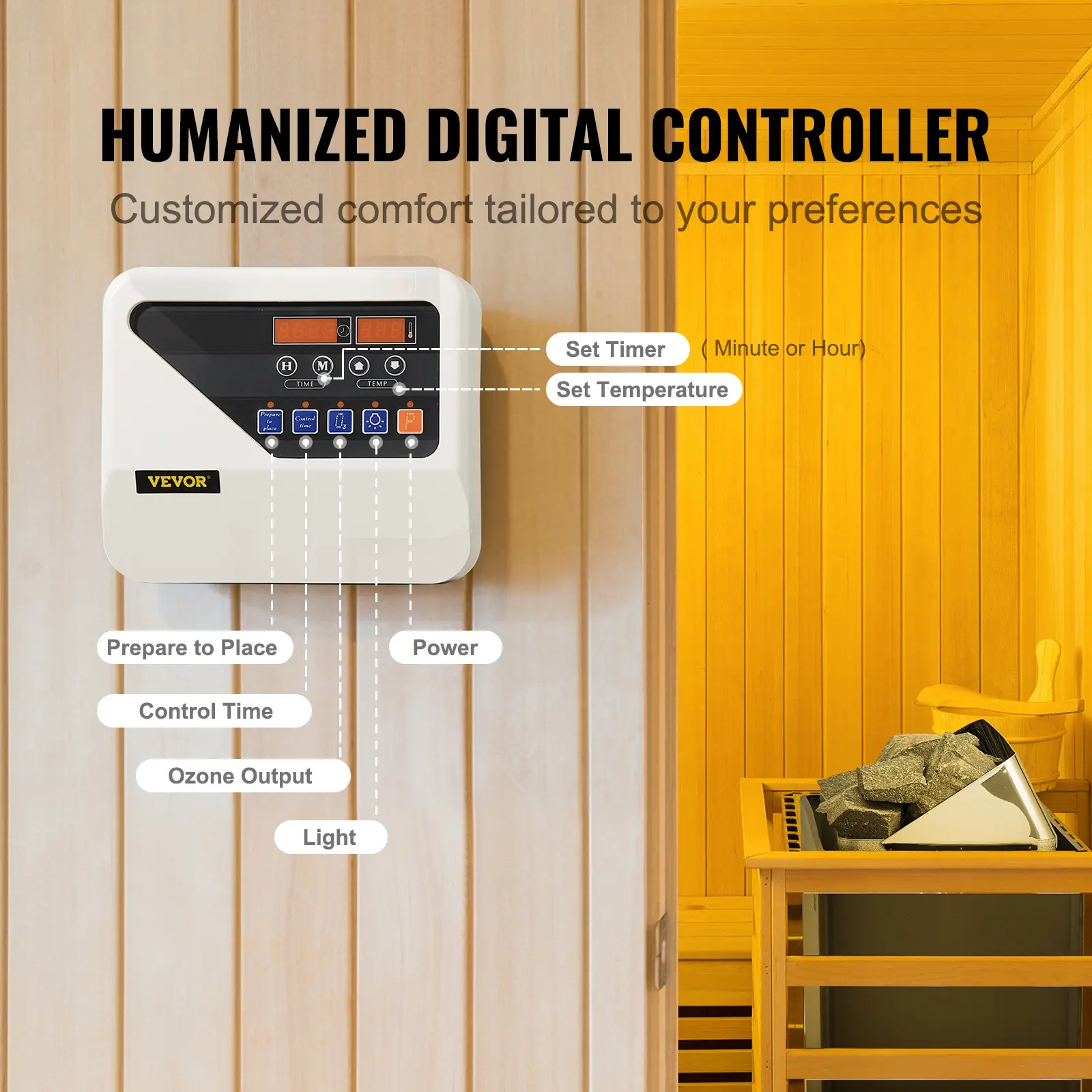 5. VEVOR Sauna Heater, 9KW 220V Electric Sauna Stove, Steam Bath Sauna Heater with External Digital Controller, 3h Timer and Adjustable Temp for Max. 317-459 Cubic Feet, Home Hotel Spa Shower Use