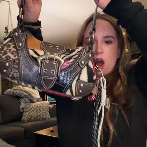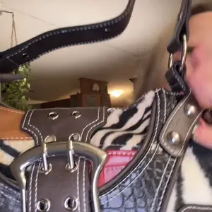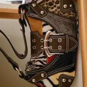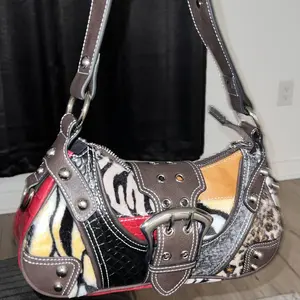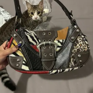 so damn adorable i love this purse so bad, the animal print is furry and the buckle is a magnet, has 3 inside pockets. also no weird smells 12/10