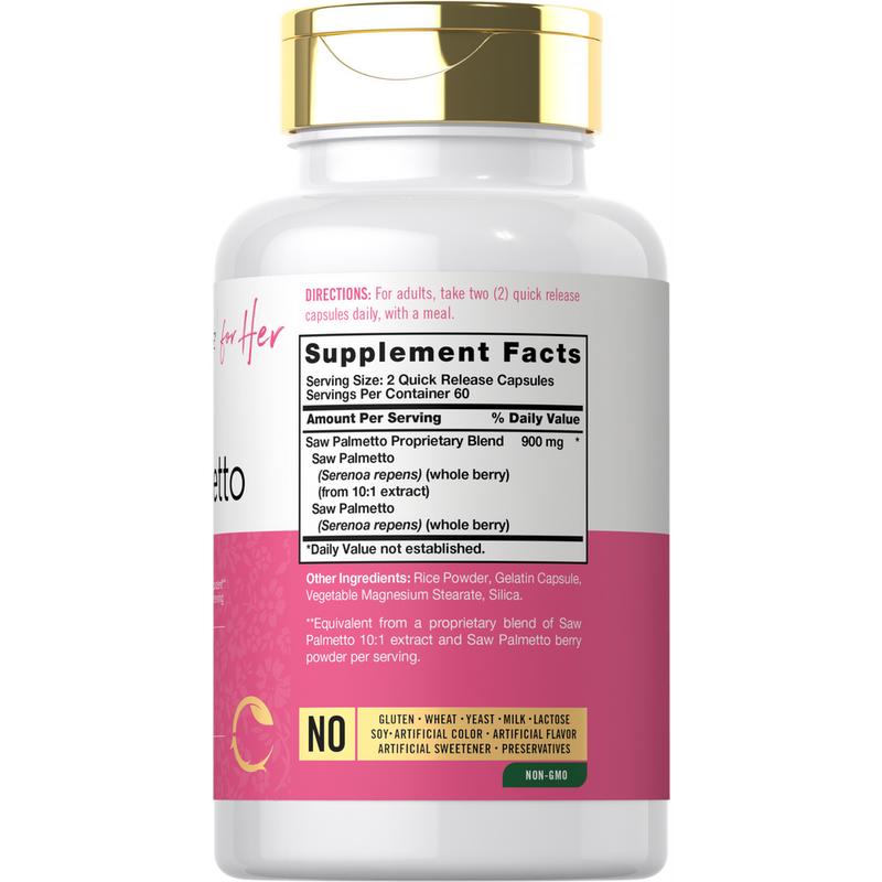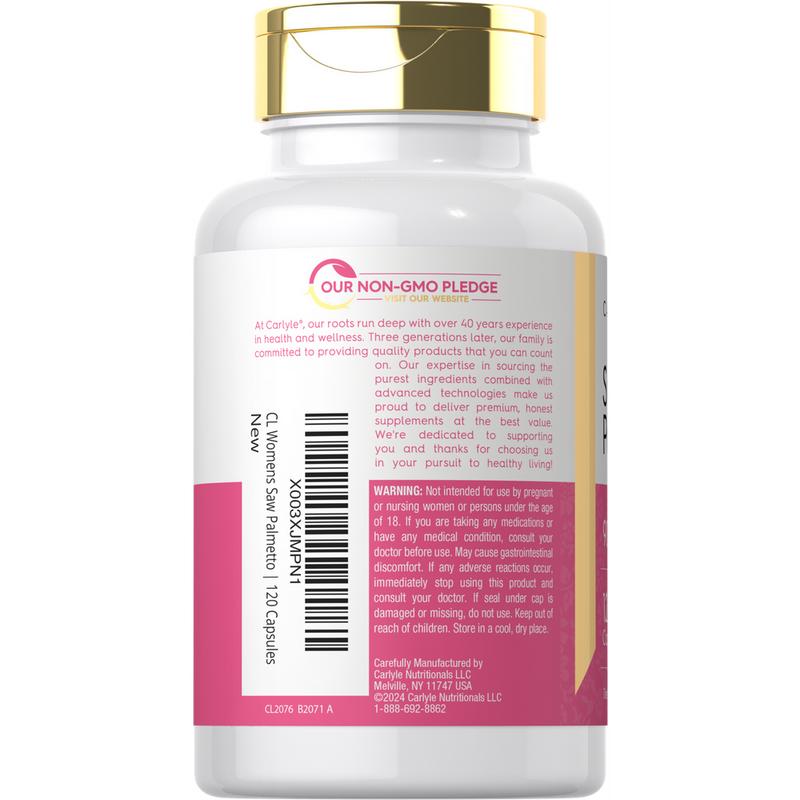 Experience this traditional herb with Carlyle Saw Palmetto! Our advanced formula, designed specifically for women, delivers a Saw Palmetto Proprietary Blend equivalent to 900 mg per serving in convenient quick release capsules.** It's gluten free and non-GMO, made with no artificial flavor, sweetener or preservatives, making it the perfect addition to any vitamins and supplements collection!
