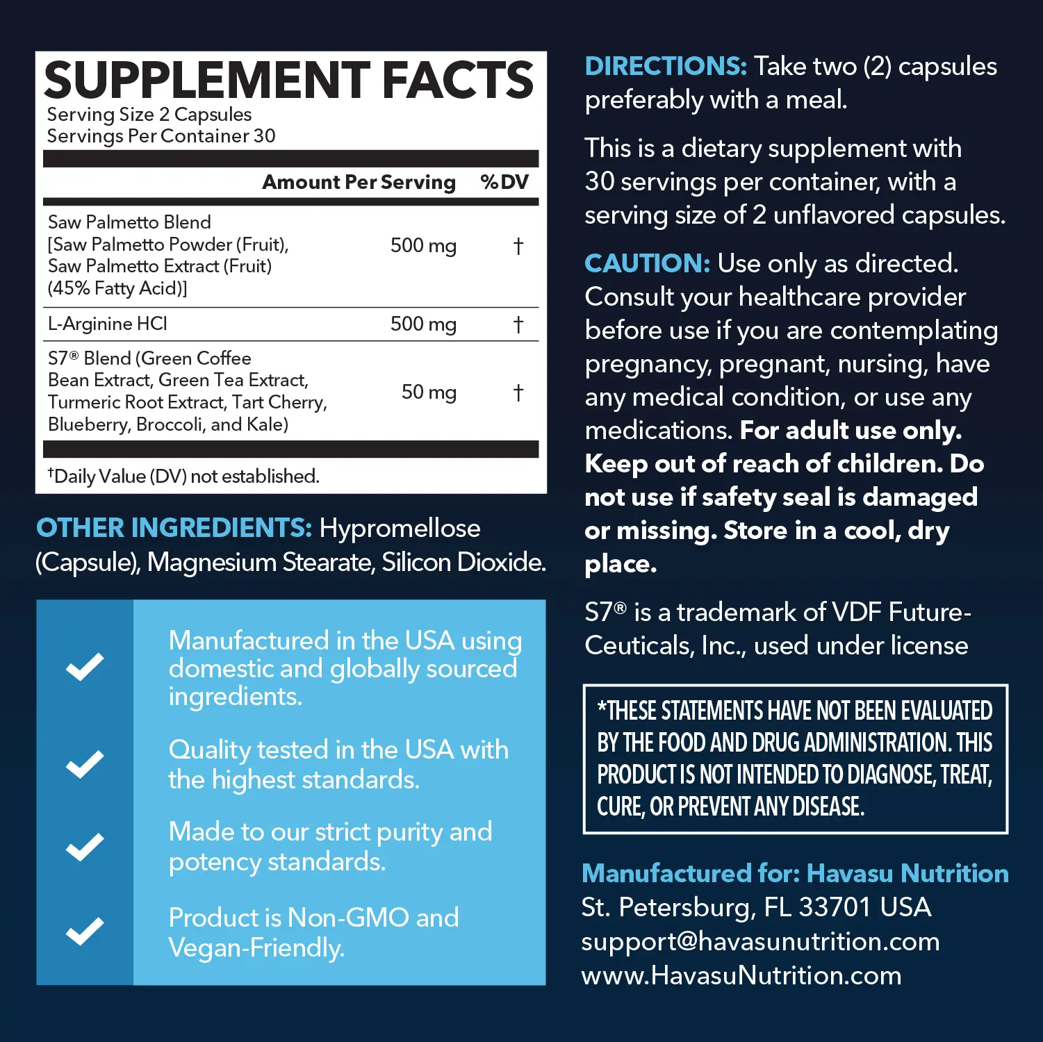 ·Key Ingredients: Includes Saw Palmetto, L-Arginine, and a unique S7 Blend featuring green coffee bean extract, turmeric root extract, kale, and more.