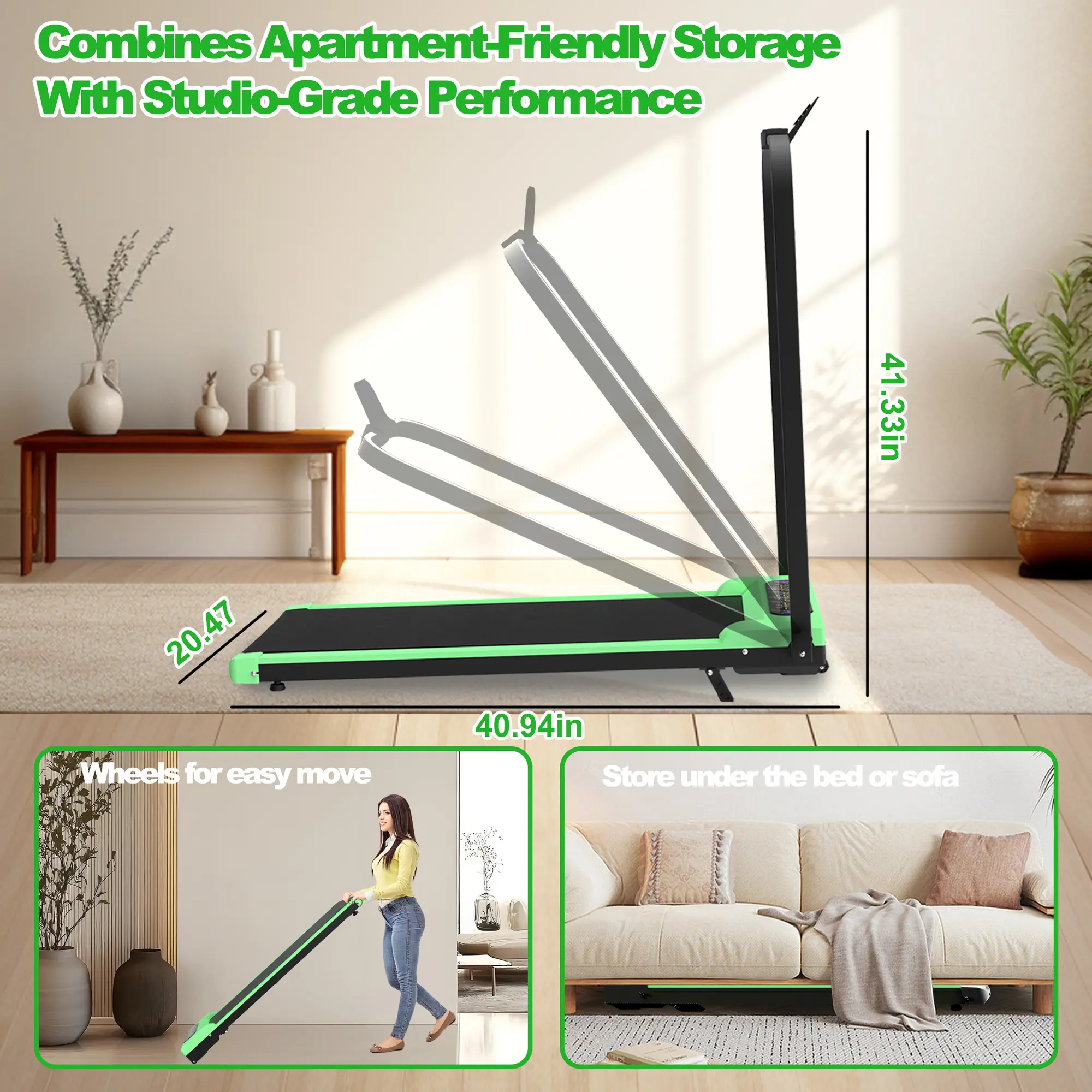 · Space-Saving Foldable Design for Small Spaces - Vertical folding design allows instant storage under beds, sofas, or closets, maximizing floor space in apartments, home offices, or small rooms. The 35-pound lightweight build + portable structure lets you move it effortlessly—turn any room into a fitness hub without sacrificing living space.
