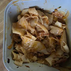 ·Noodle Type: Super wide, chewy noodles.