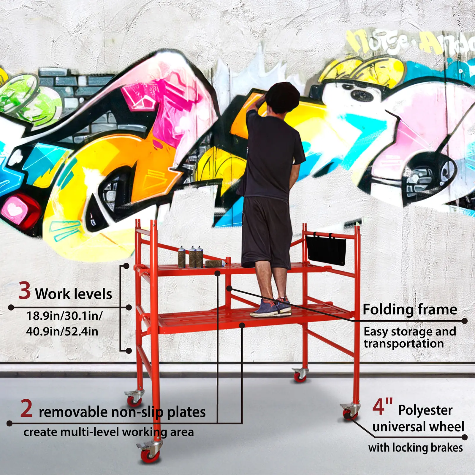 LEADALLWAY Scaffolding Platform 4 Foot High Mobile Baker Scaffolding Mini Portable Scaffolding 770 LBS Capacity with Locking Wheels and Tool Bag #heavydutybedframes #toolsales #athomeworkoutequipment #harborfreighttools #traileraccessories #garagegymsetup #telescopingladder #foldableworkoutbench #rollinglaundryhamper #fitnesssetup #newyearnewme #ScaffoldingPlatform